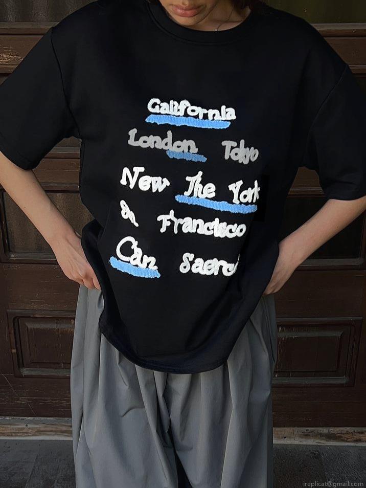 Women's Loose Short Sleeve T-Shirt Cotton Blend Breathable Round Neck Embroidered City Letters Summer Streetwear Casual Fashion Top Comfortable Tee for Ladies