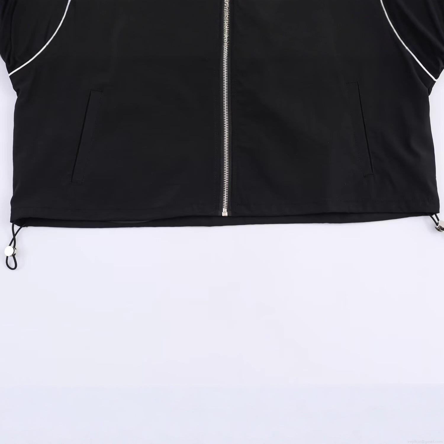 Solid Color, Splice, Color Blocking, Zipper, Drawstring, Contrasting Trim