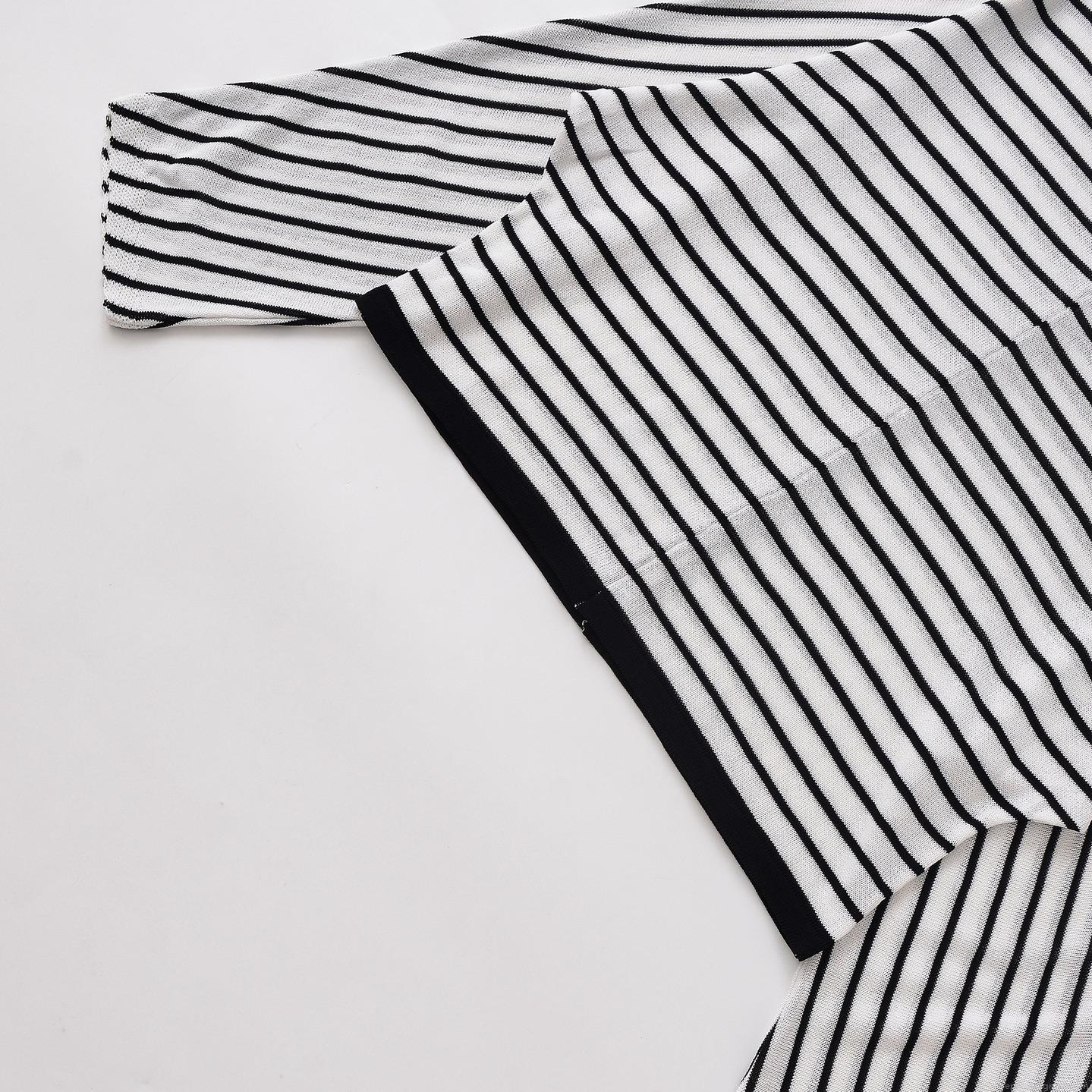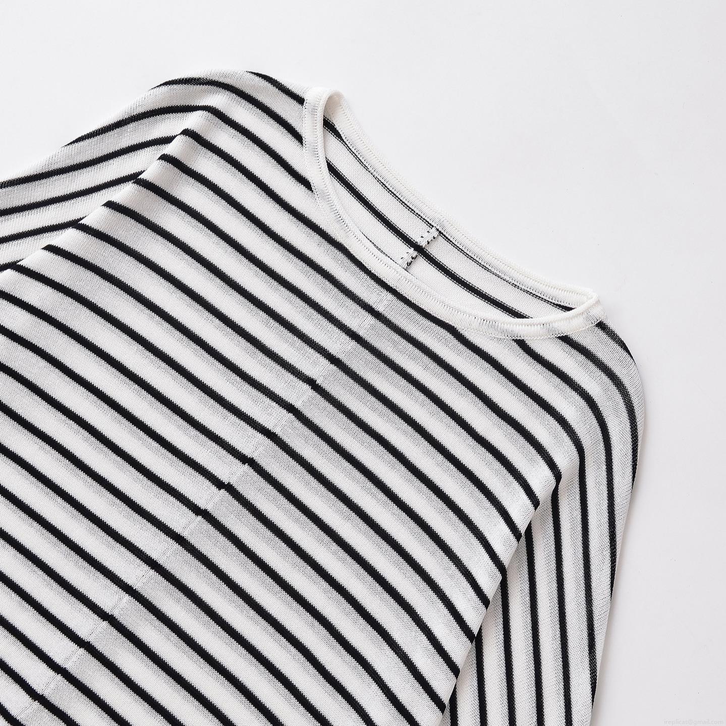Women's Loose Stripe Knit T-Shirt Long Sleeve Round Neck Batwing Sleeve Casual Pullover Top Polyester Spandex Striped Blouse For Daily Fall Winter
