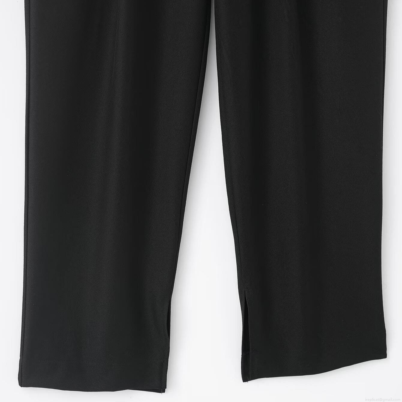 Women's Loose Wide Leg Pants 100% Polyester Twill High Waist Suit Trousers With Side Slits Casual Office Fashion Long Pants For Women