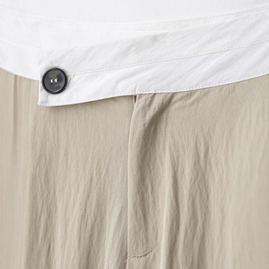 Solid Color, Pleats, Spliced waistband, Dark Decorative Buckle