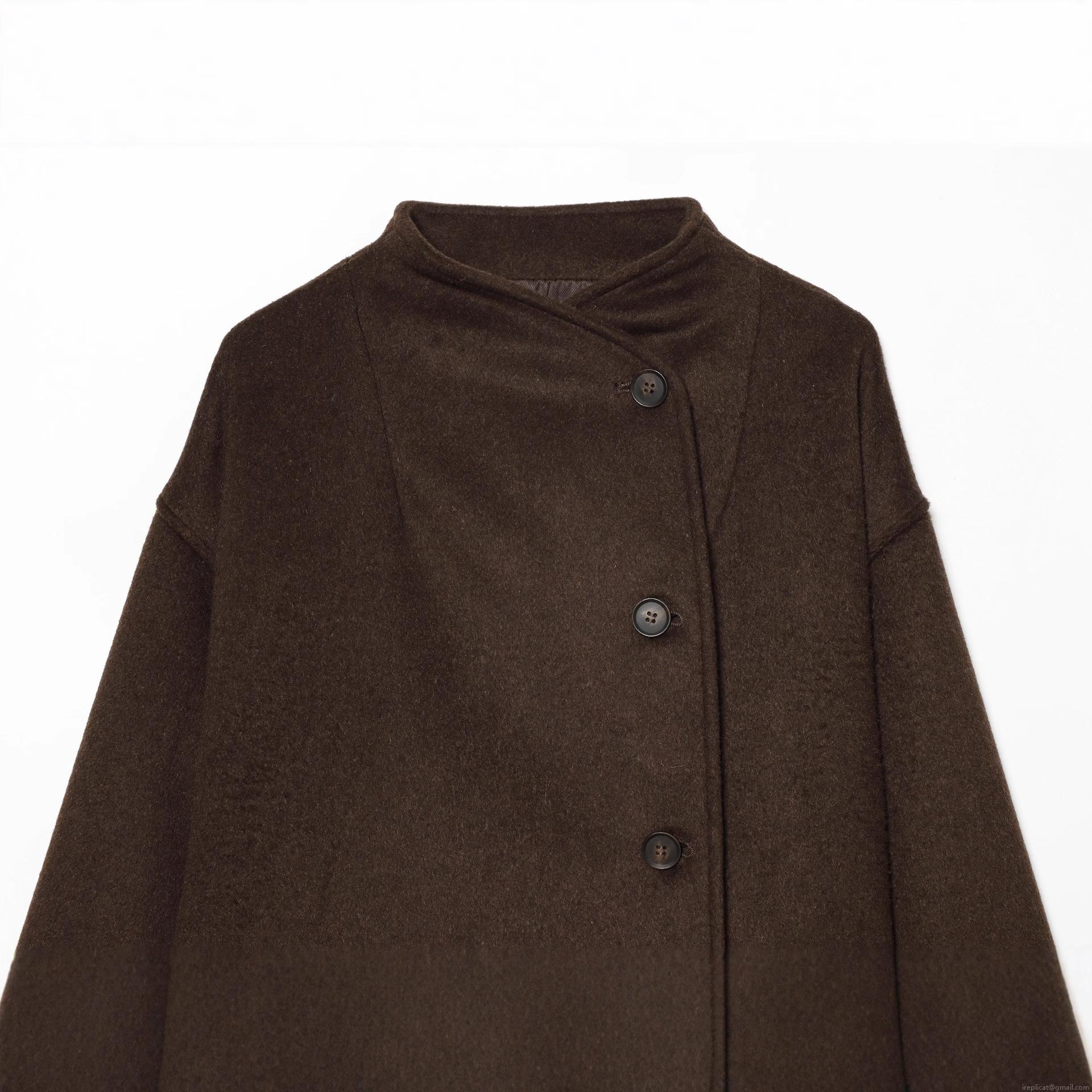 Women's Loose Woolen Jacket Stand Collar Single Breasted Short Coat Solid Coffee Brown Polyester Outerwear For Autumn Winter Casual Streetwear