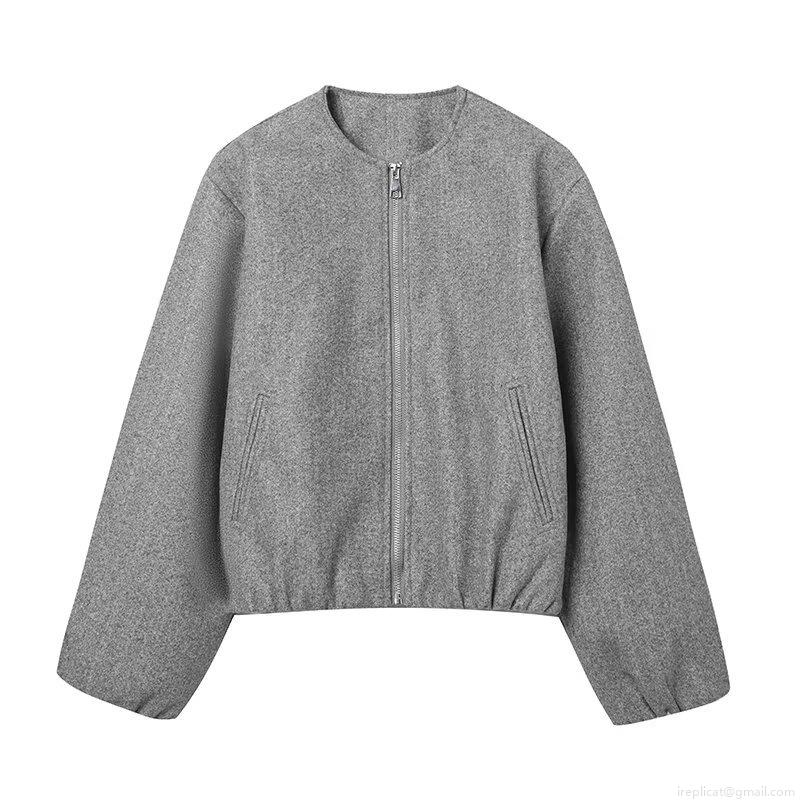 Women's Loose Zipper Flight Jacket 100% Polyester Woven Short Coat Round Neck Casual Streetwear Outerwear For Women Long Sleeve Jacket With Pockets