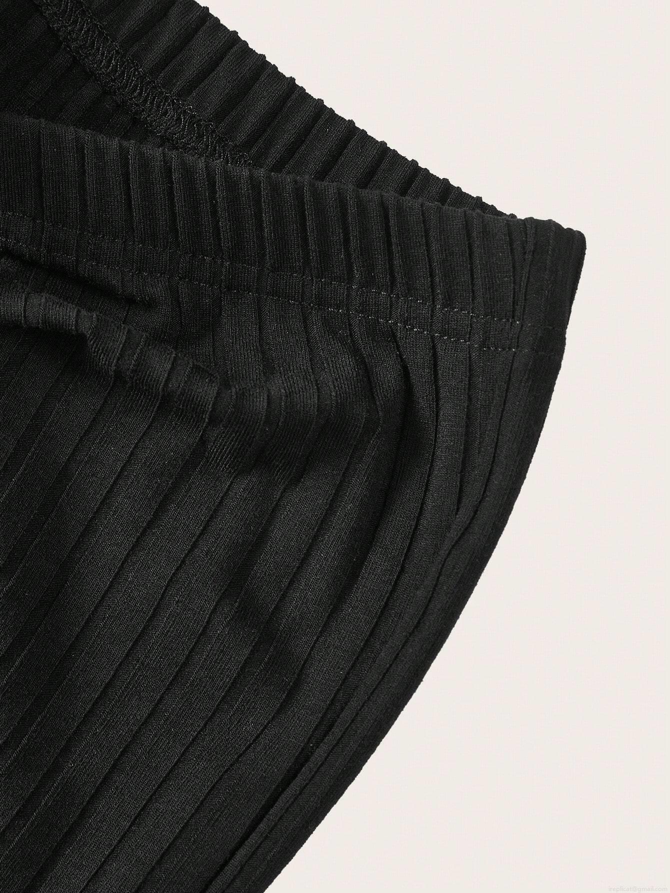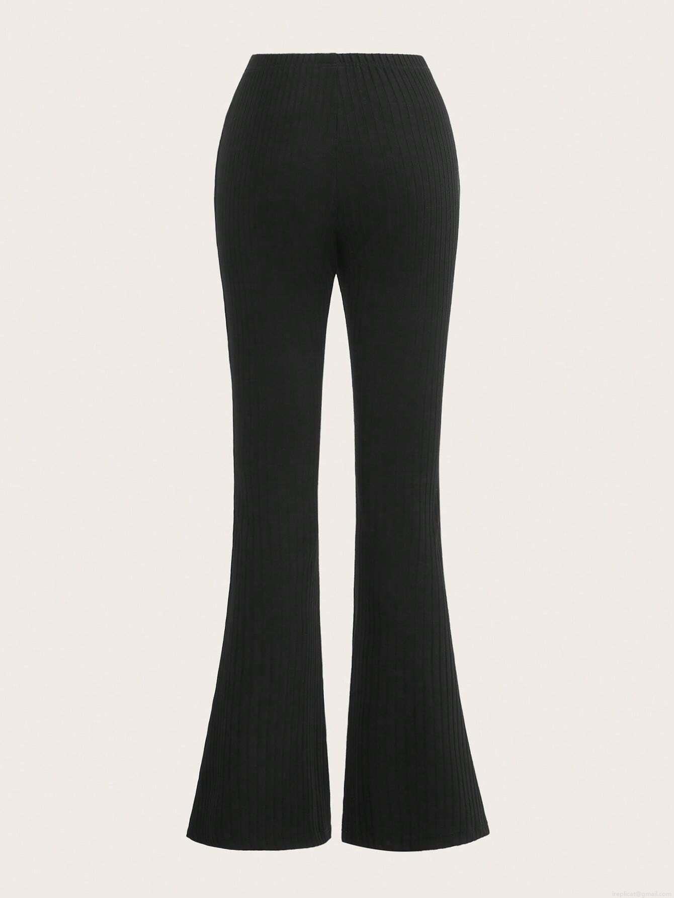 Women's Low Waist Ribbed Knit Flared Pants Slim Fit Drawstring Polyester Rayon Blend Trousers Casual Bell Bottom Yoga Pants For Women