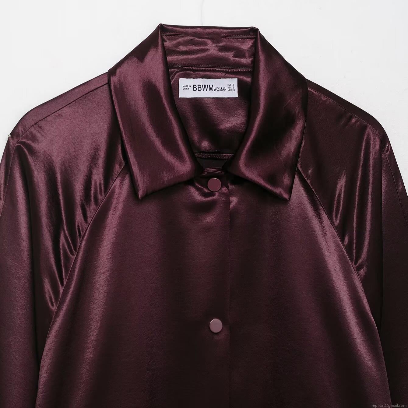 Women's Luxury Satin Texture Long Sleeve Jacket Autumn Turn-down Collar Single Breasted Solid Color Outerwear For Streetwear Party Lady