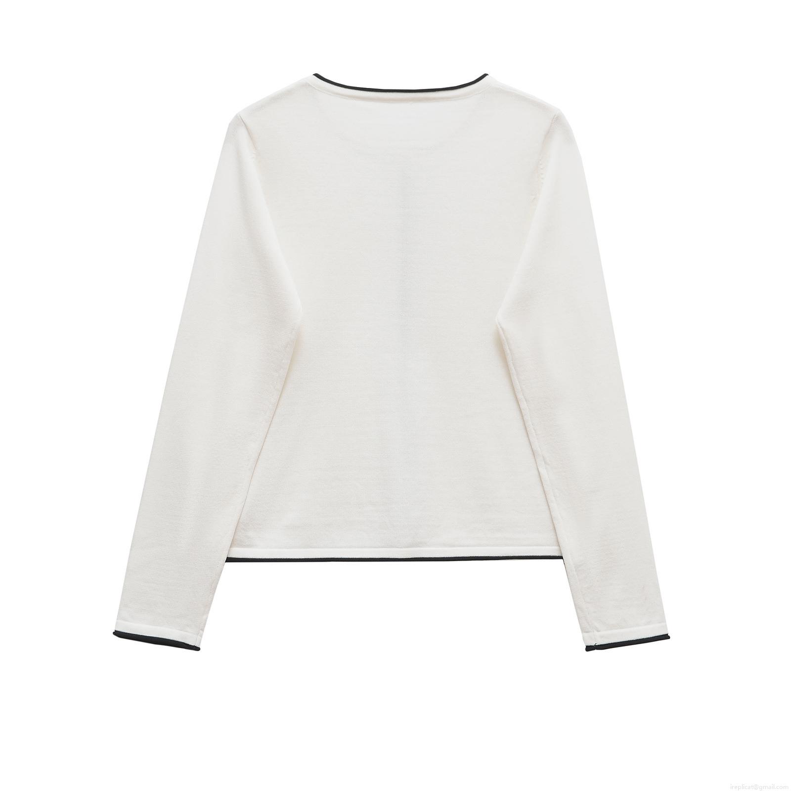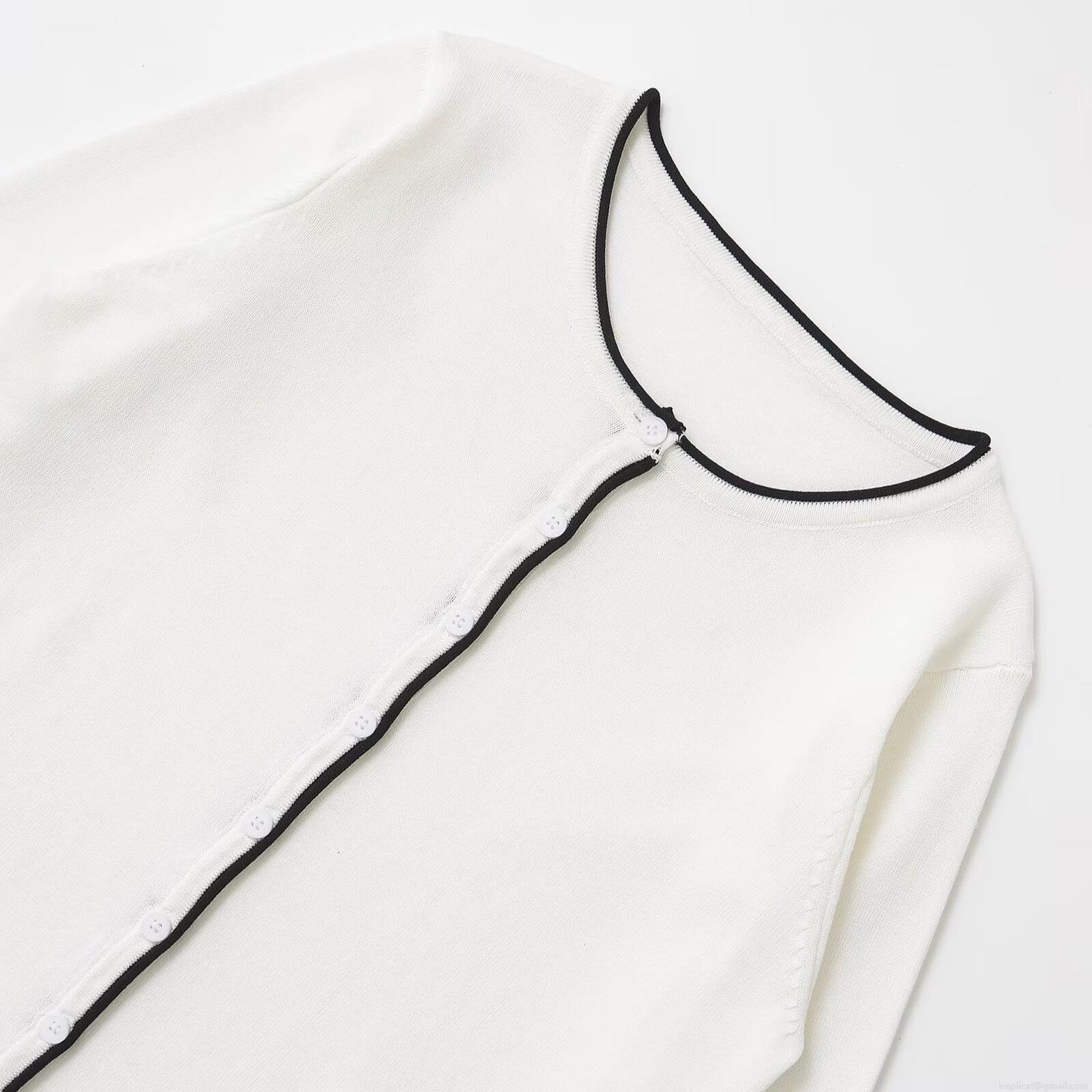 Women's Mercerized Cotton Knit Cardigan Contrast Trim Round Neck Long Sleeve Button Down Sweater Casual Soft Lightweight Top For Spring Summer