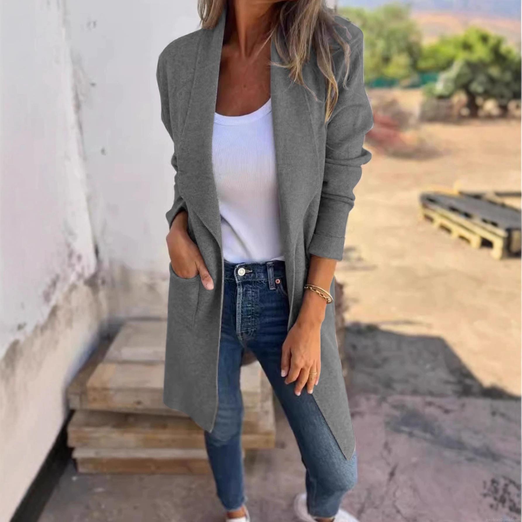 Women's Mid-Length Cardigan Coat Double-Sided De-Velvet Lapel Open Front Jacket Casual Loose Warm Outerwear With Pockets For Autumn Winter Solid Color Top
