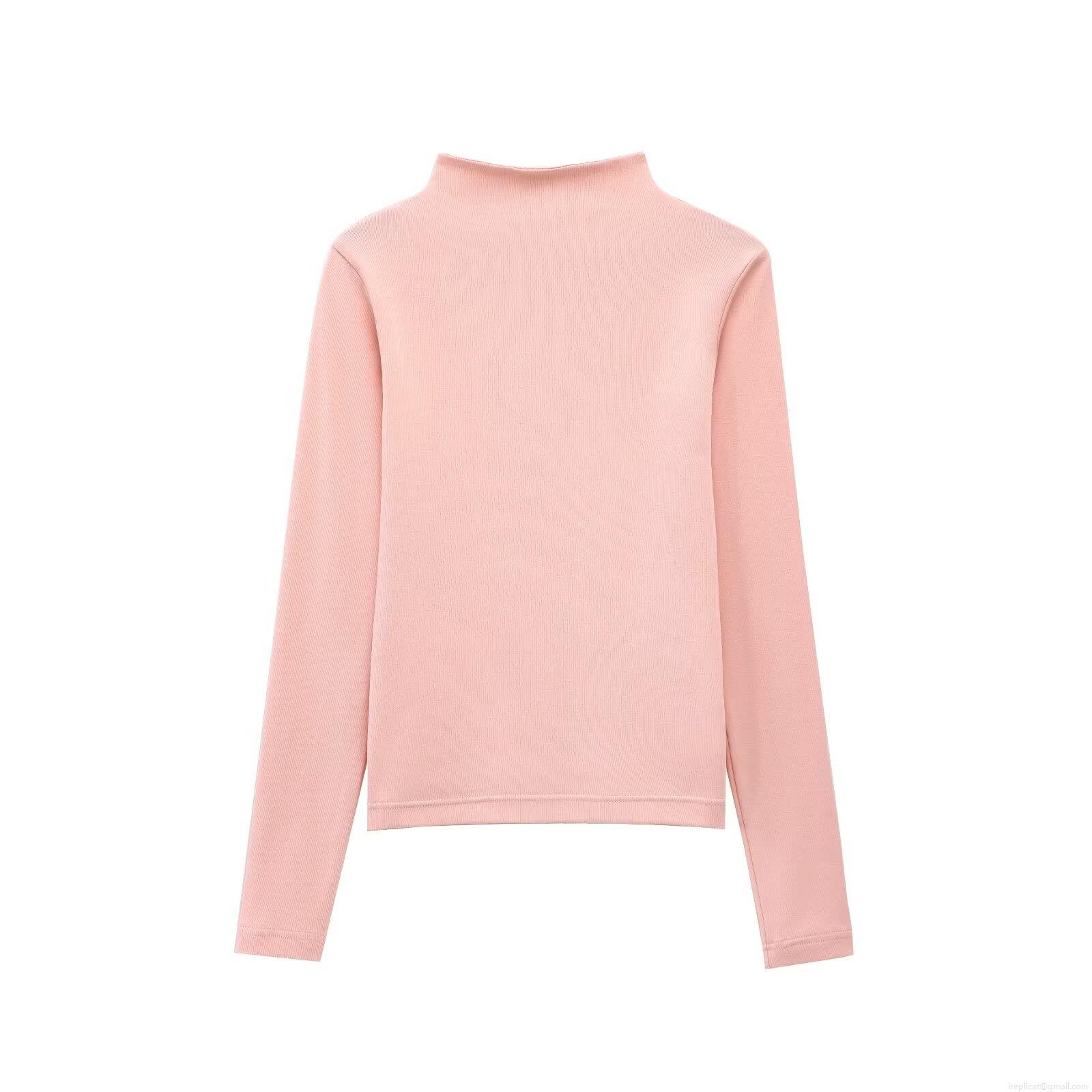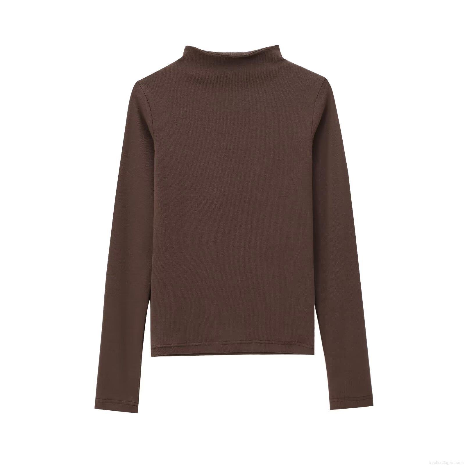 Women's Mock Neck Long Sleeve T-Shirt Slim Fit Solid Color Polyester Knit Base Layer Top Autumn Streetwear Versatile Pullover Blouse