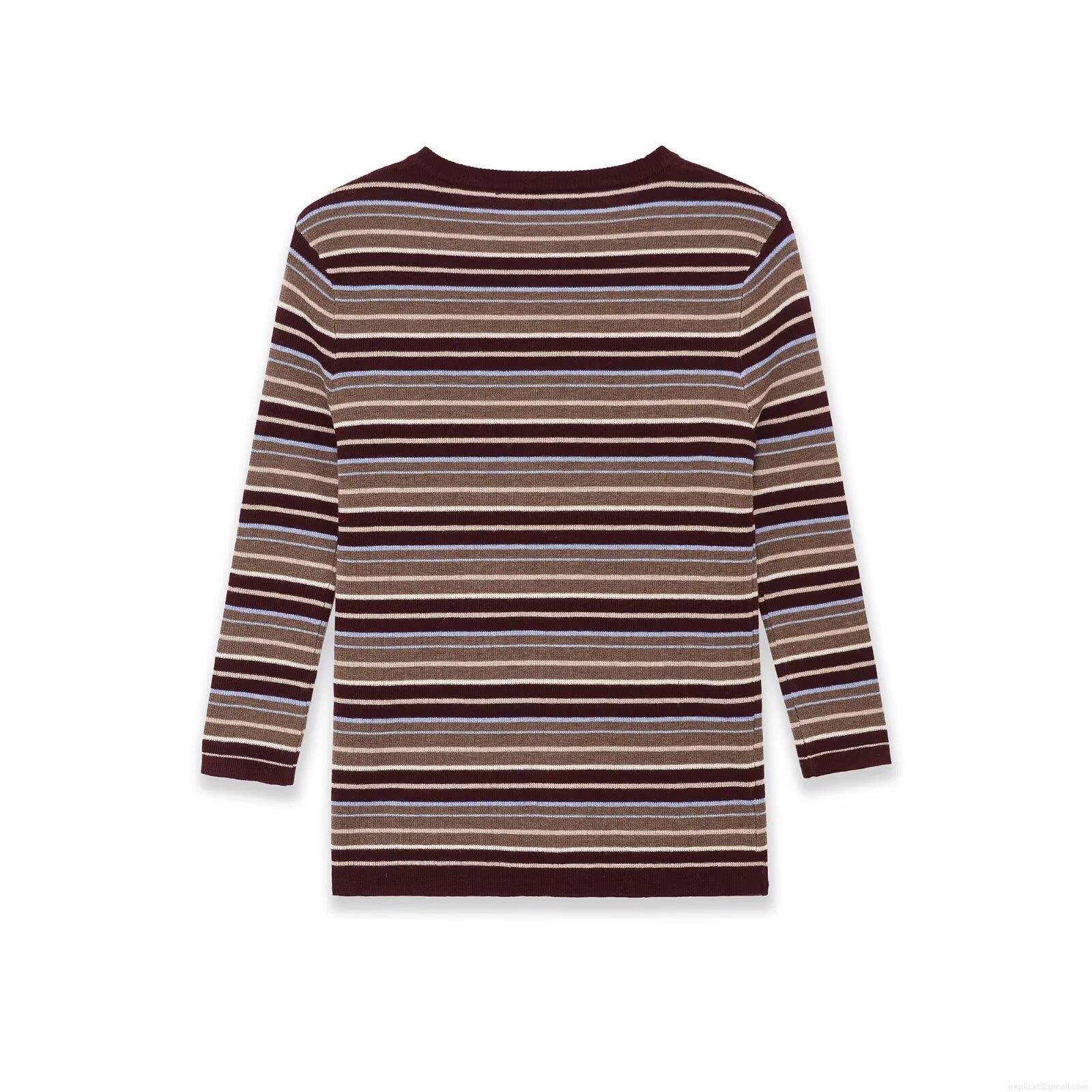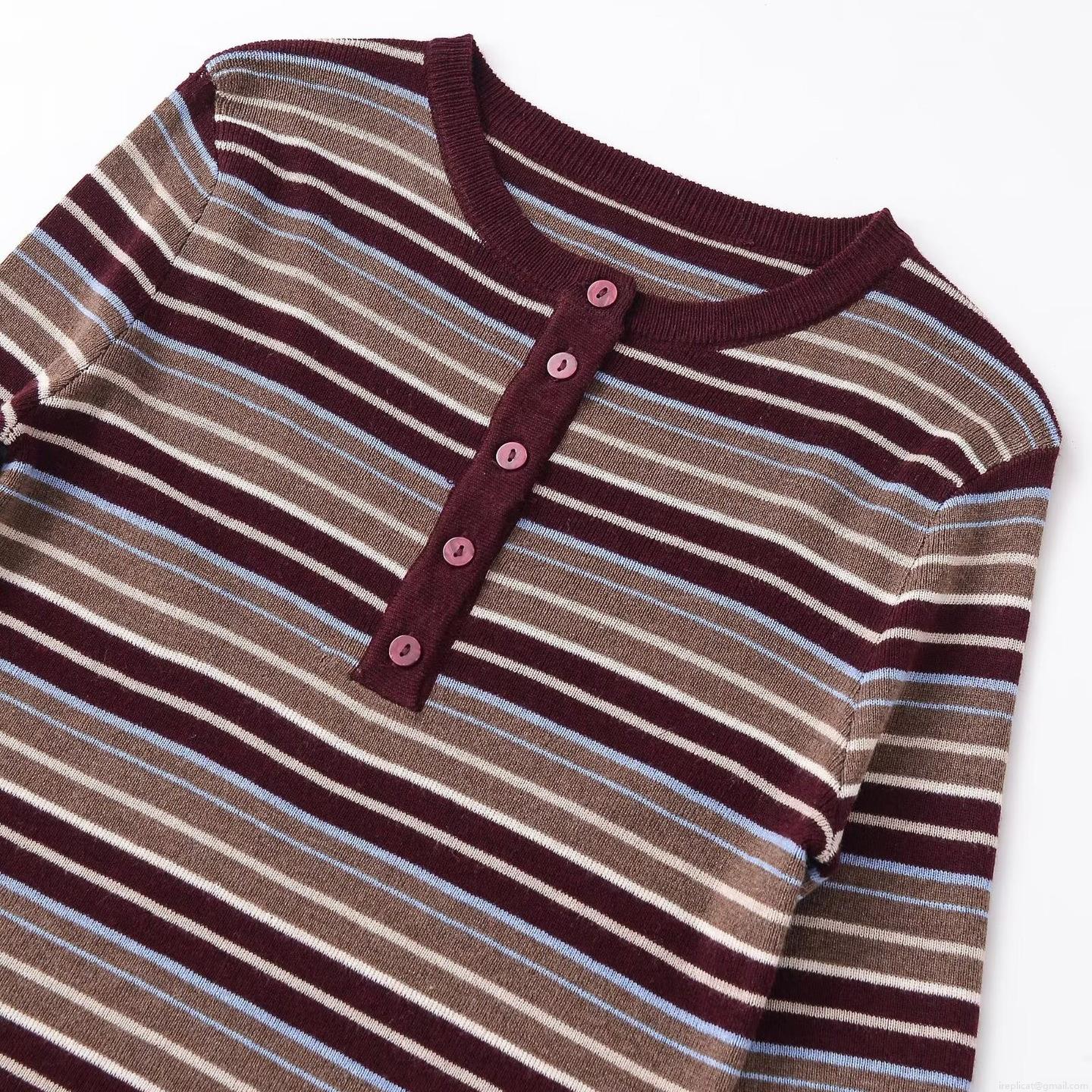 Stripe, Horizontal Stripes, Color Blocking, Ribbed Knit, Button Decoration, Henry's Collar