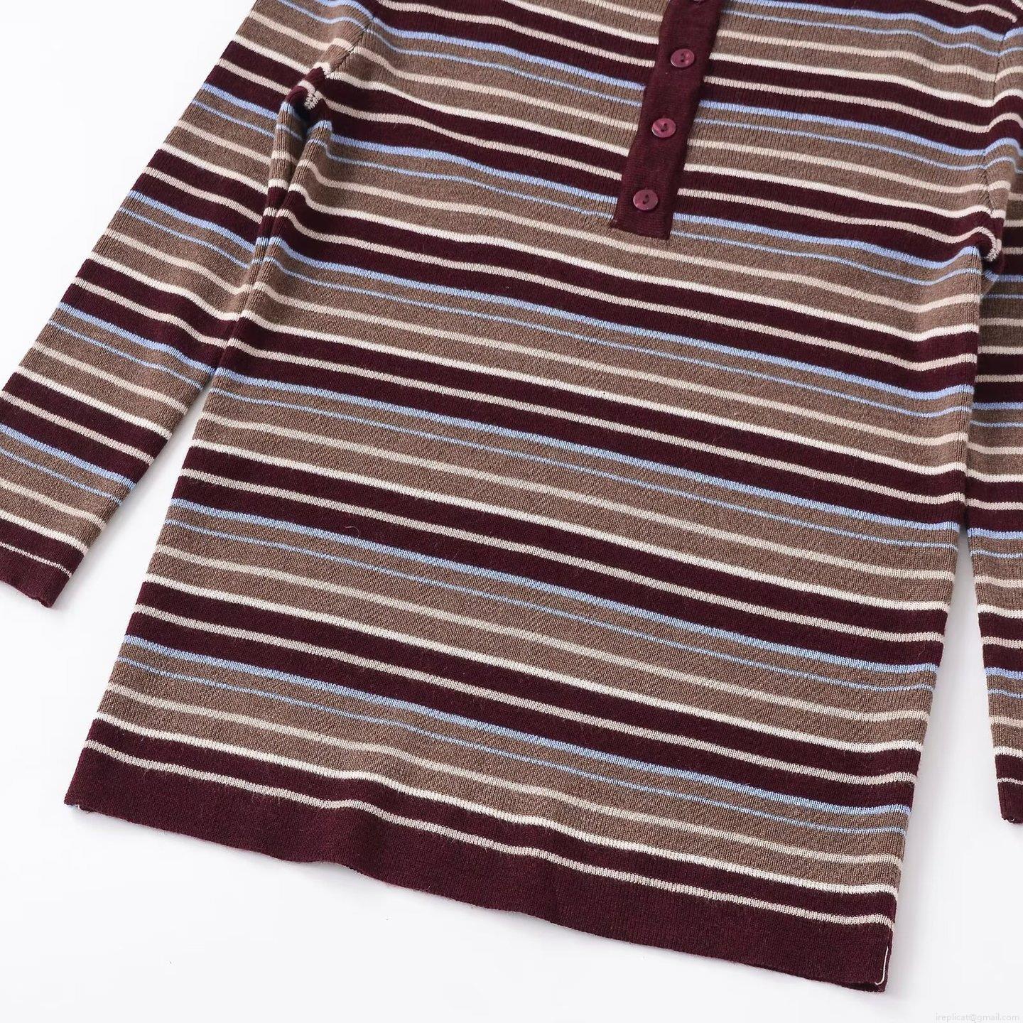 Multicolored Horizontal Stripes, Five-button Placket