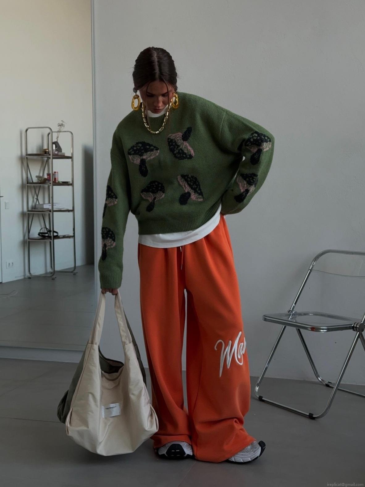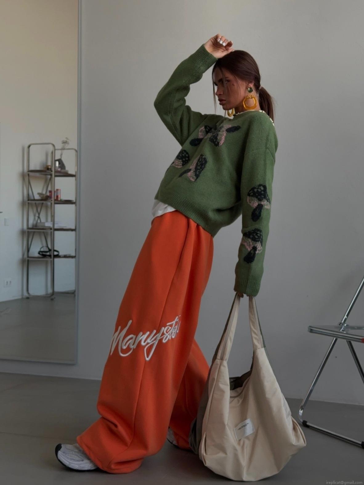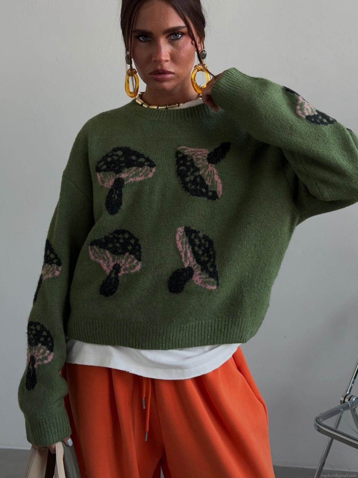 Women's Mushroom Pattern Knit Sweater Long Sleeve Cotton Blend Loose Pullover Casual Crewneck Oversized Jumper Streetwear Spring Autumn Top
