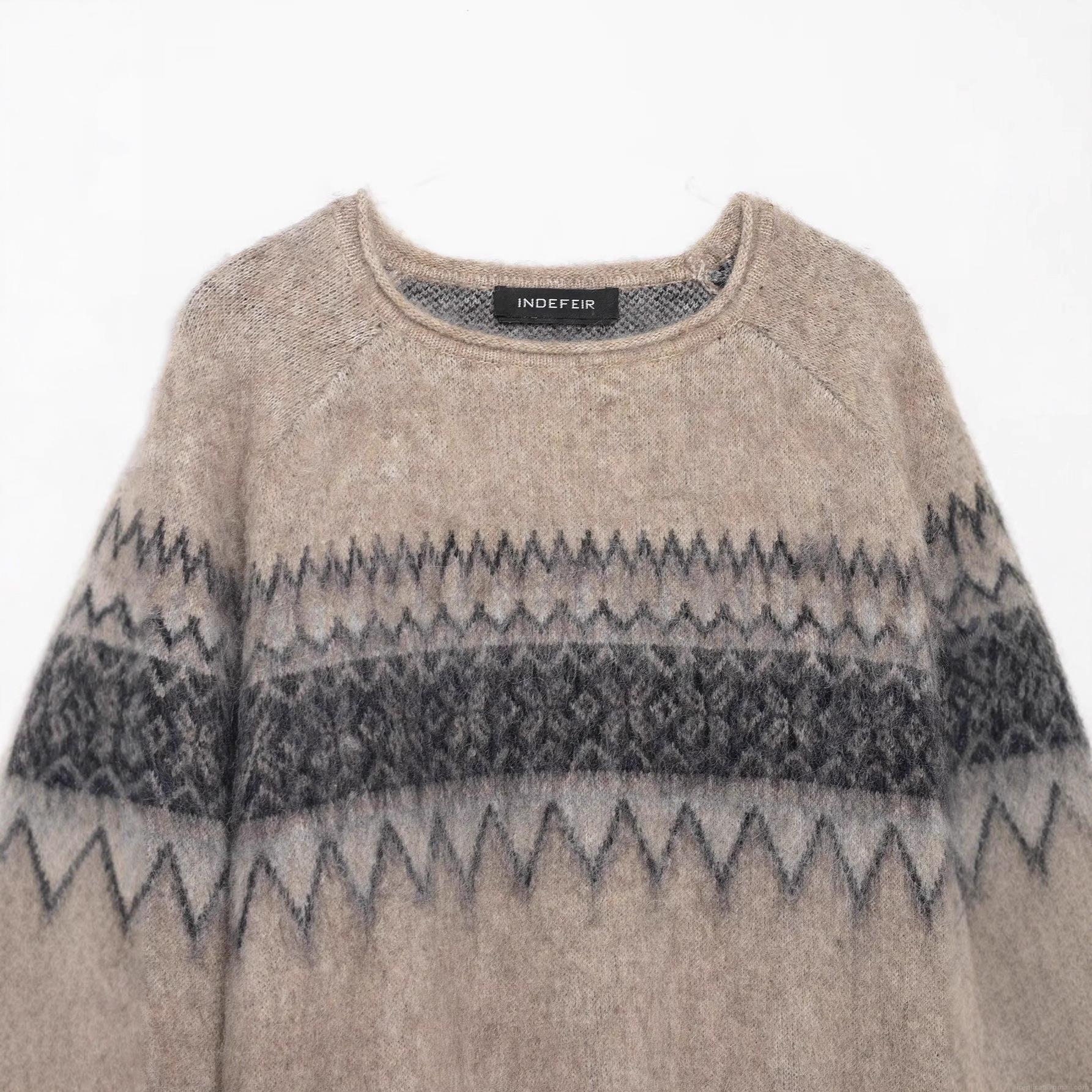 Women's Nordic Fair Isle Jacquard Knit Sweater Oversized Round Neck Long Sleeve Mohair Texture Pullover Jumper For Autumn Winter Daily Streetwear