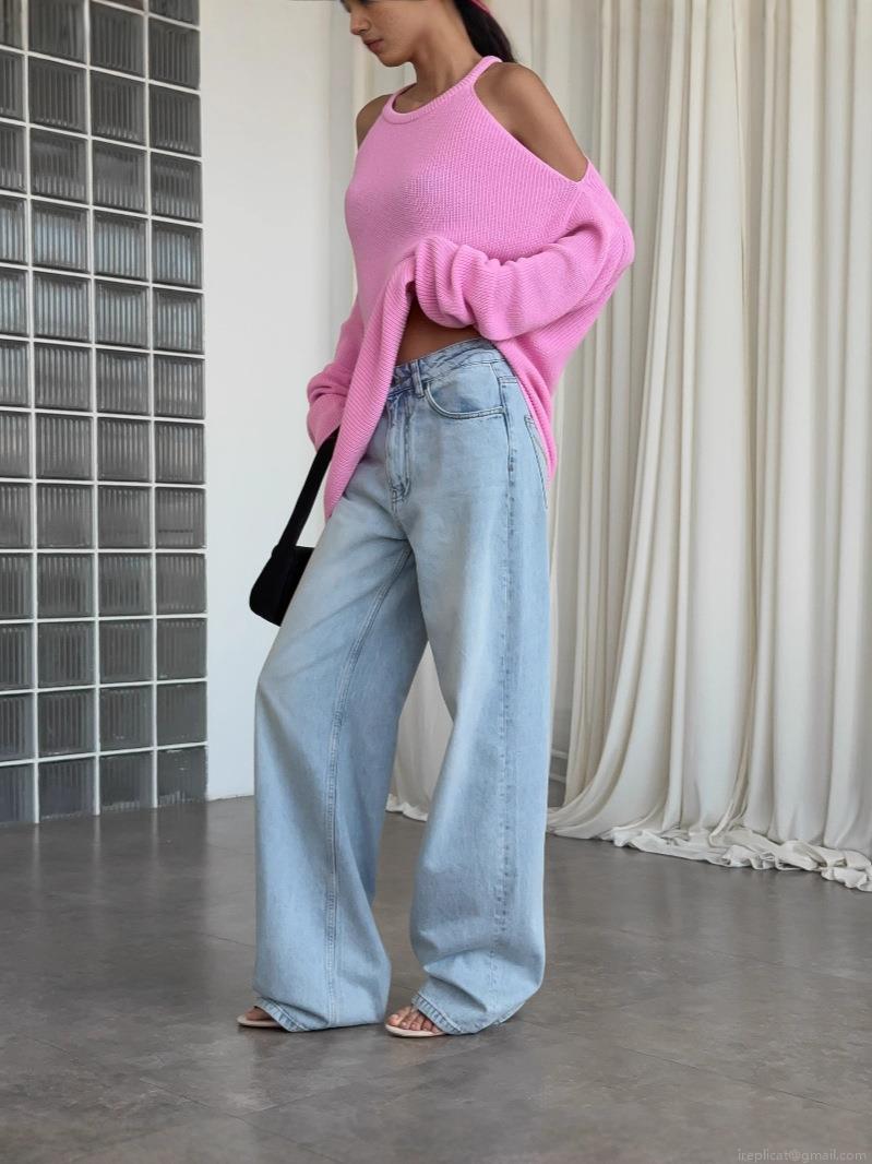 Women's Off-Shoulder Knitted Sweater Pink Cotton Blend Halter Neck Long Sleeve Pullover Autumn Winter Chic Loose Jumper Top