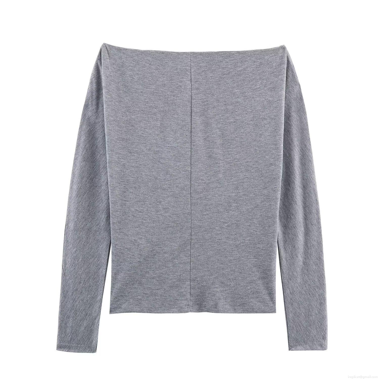 Women's Off-The-Shoulder Long Sleeve T-Shirt Polyester Spandex Studded Detail Casual Pullover Top For Daily Winter Fashion Women