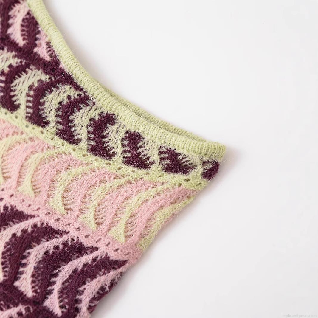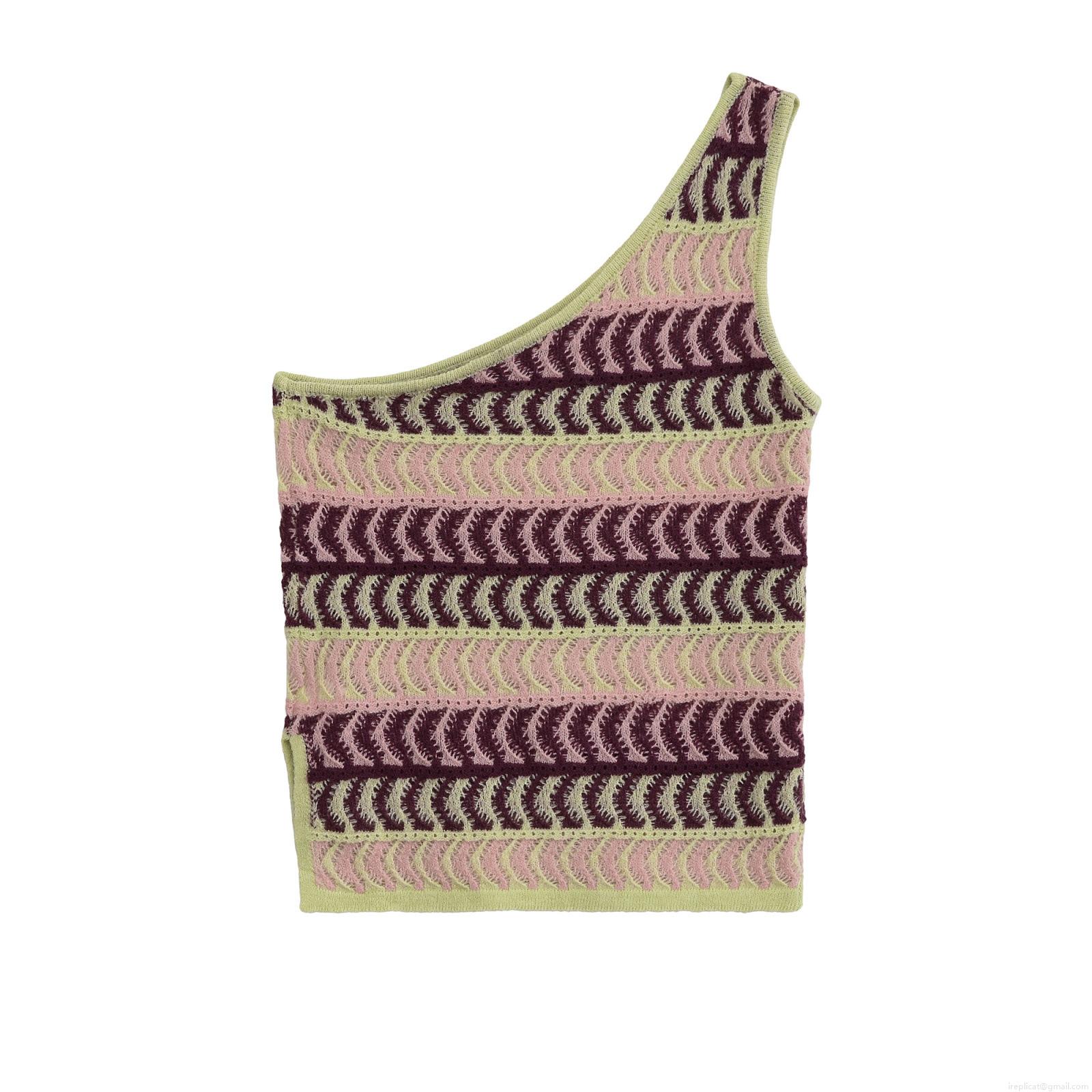 Color Blocking, Color-blocked Stripes, Collage, One-shoulder Asymmetrical Neckline, Knitted Openwork, Horizontal Geometric Wave Pattern