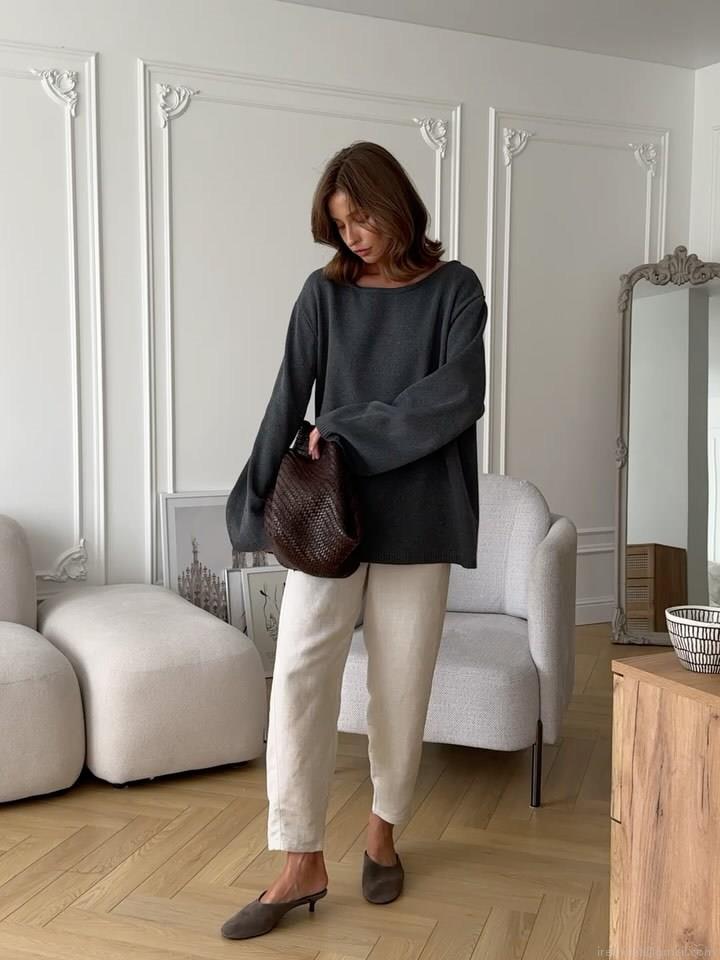 Women's Open Back Pullover Sweater Cotton Polyester Blend Oversized Knit Top Soft Lazy Style Long Sleeve Jumper For Autumn Winter Casual Daily Wear