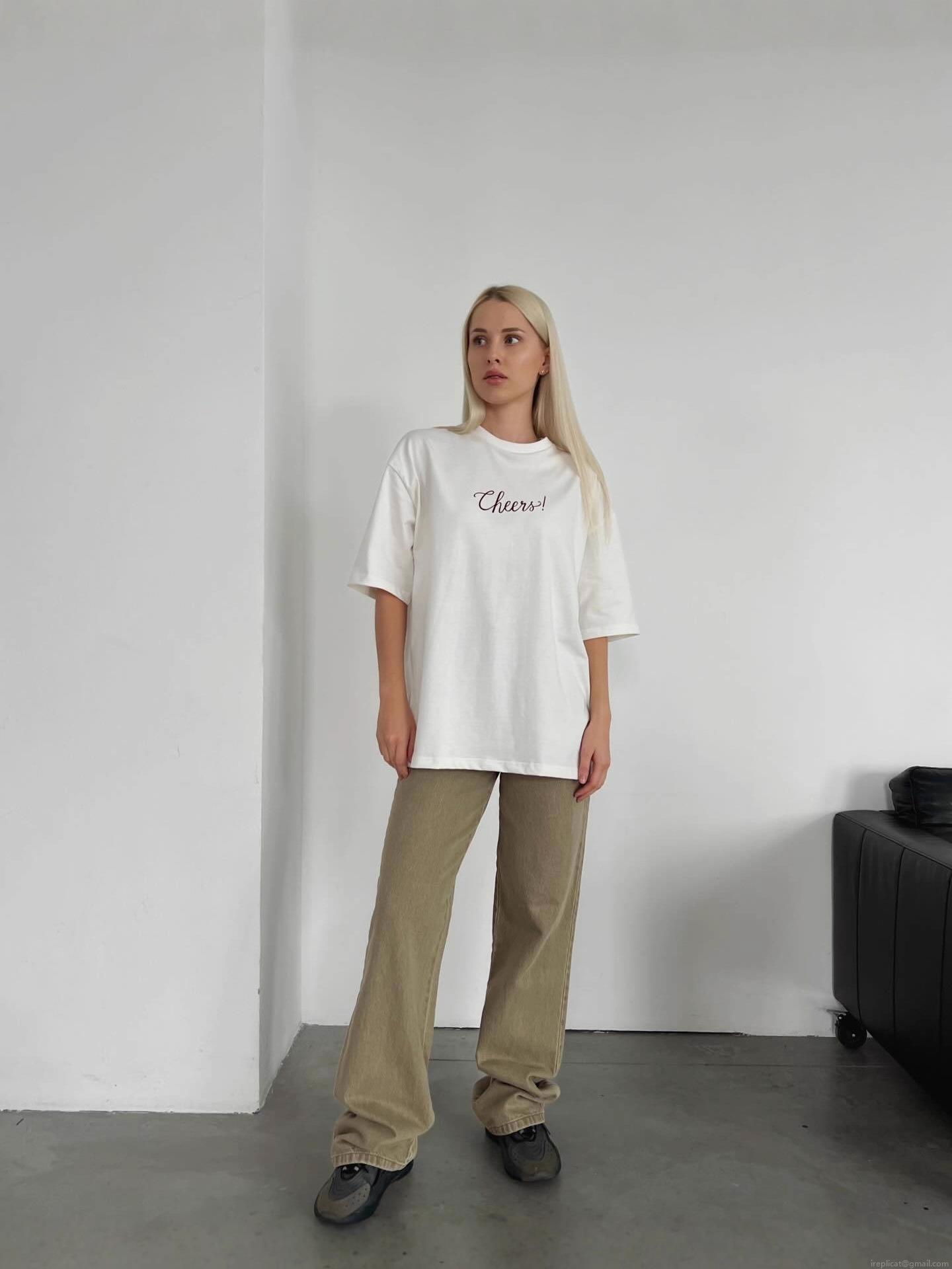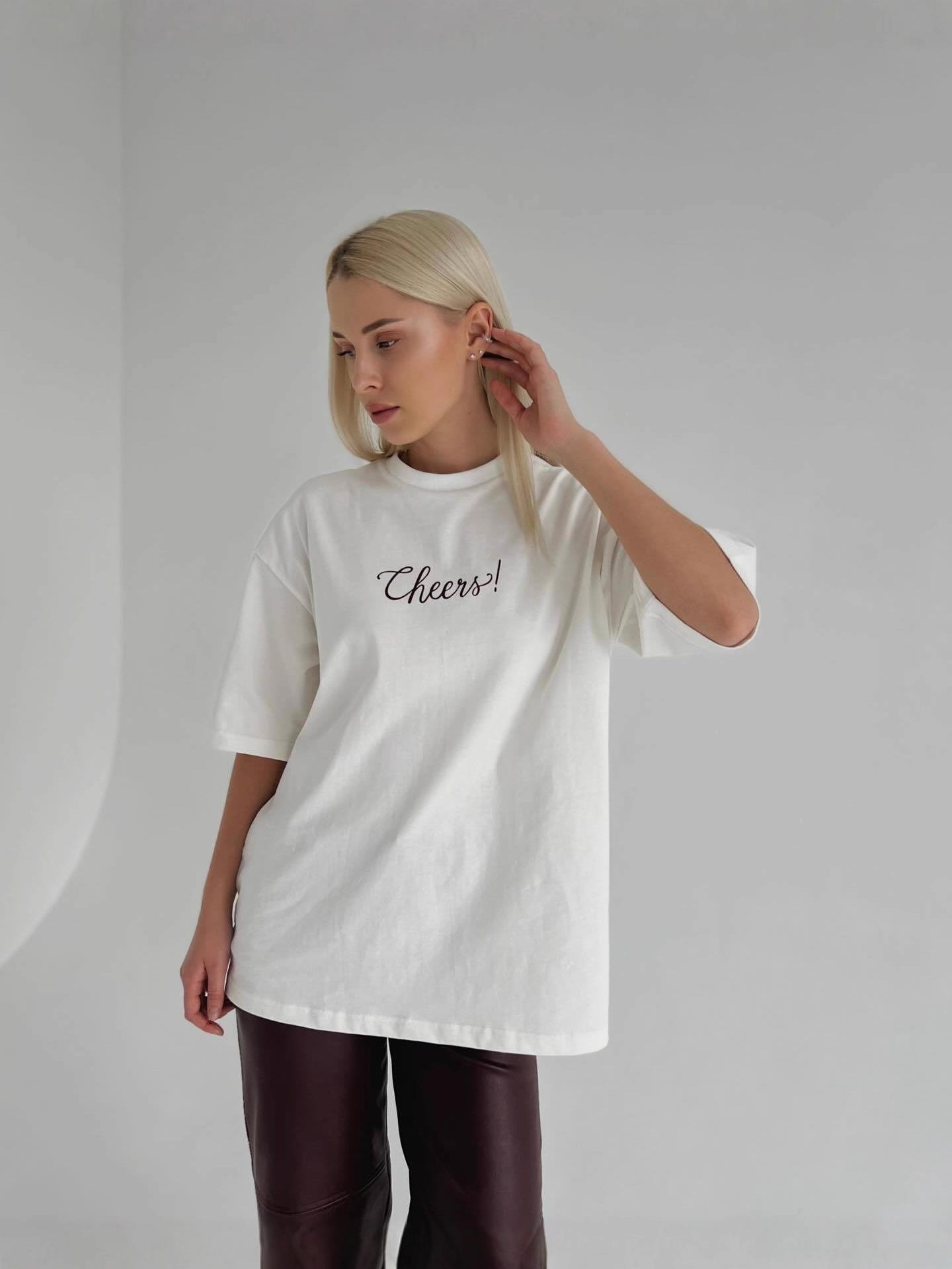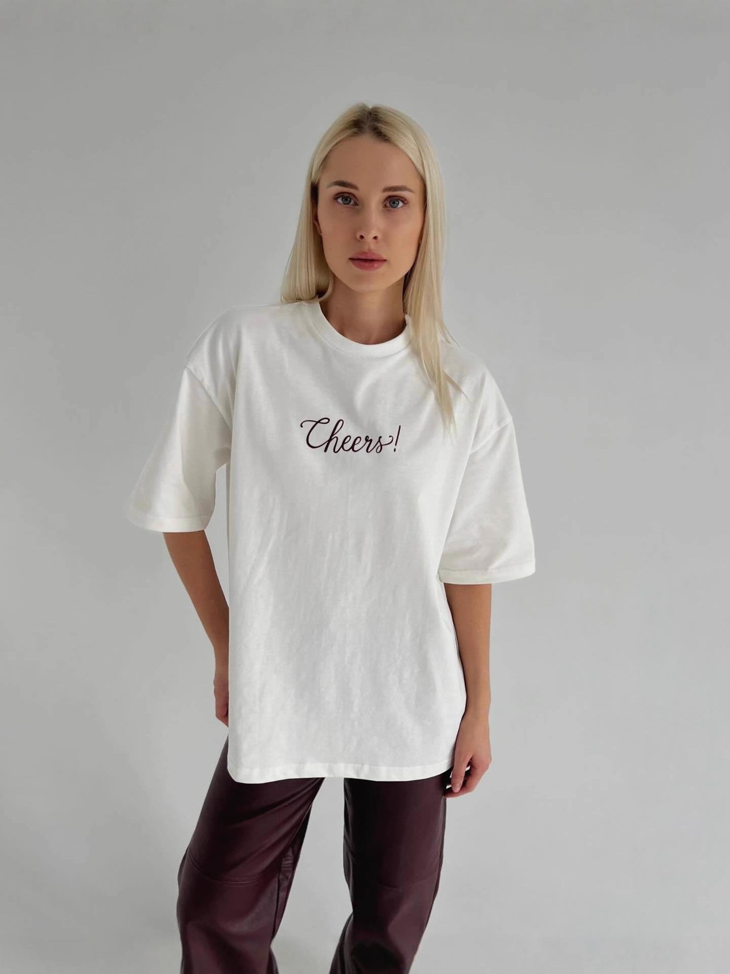 Women's Oversize Cotton Blend T-Shirt Casual Cheers Letter Print Short Sleeve Round Neck Top Summer Y2K Graphic Tee White