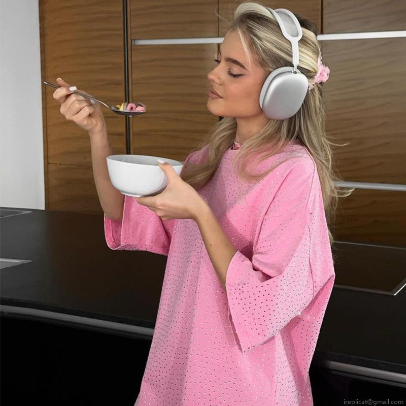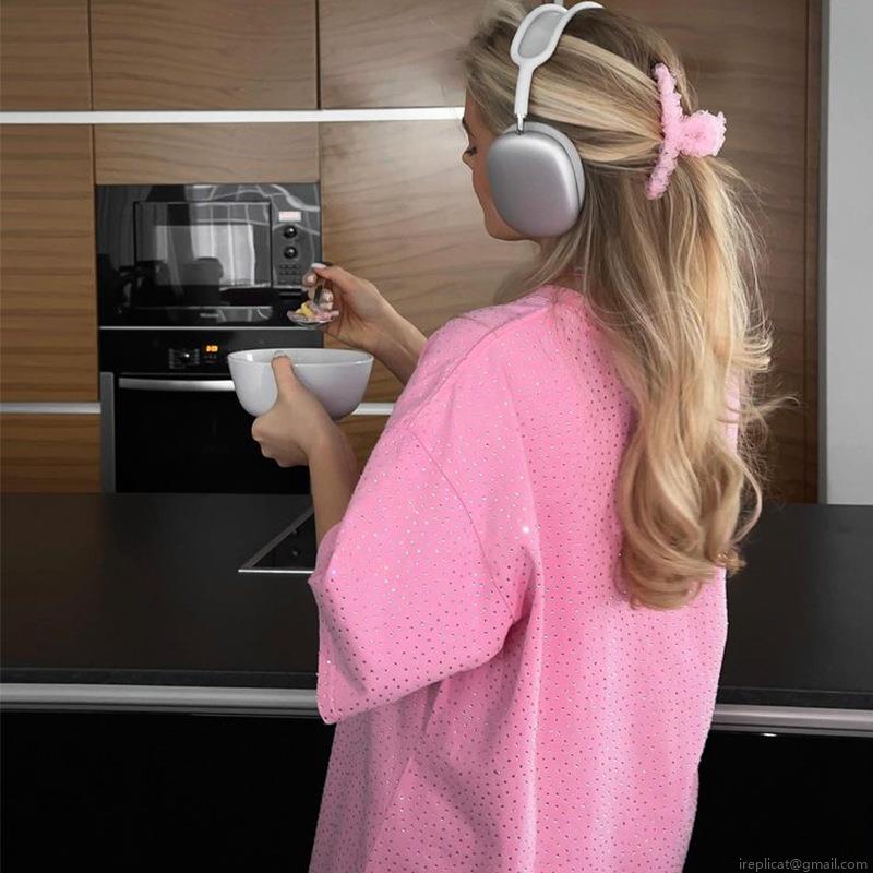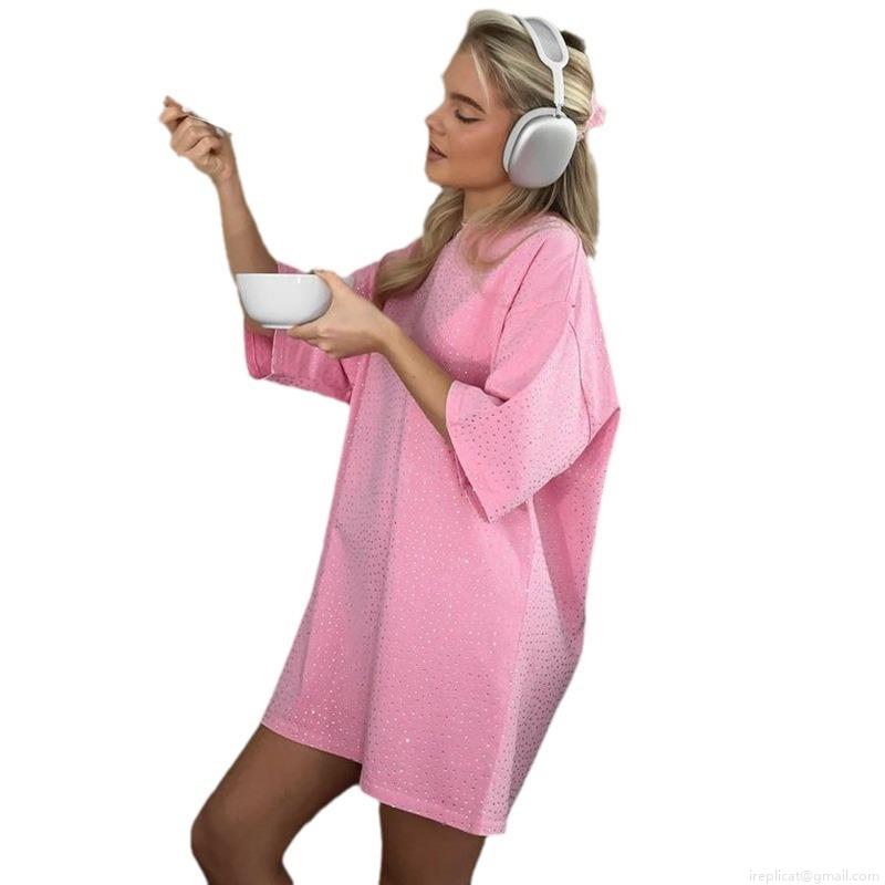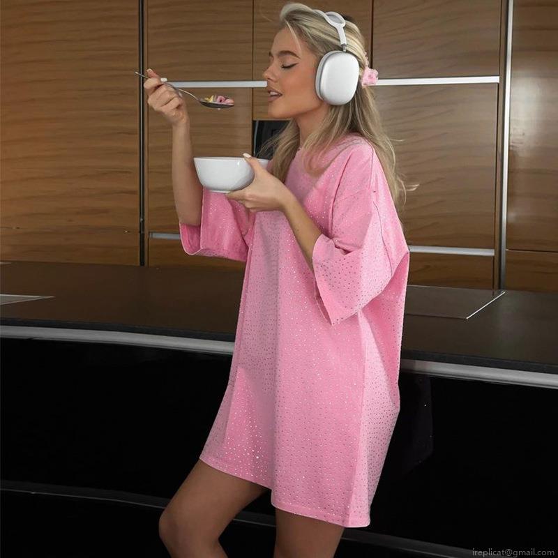 Women's Oversize T-Shirt Pink Rhinestone Short Sleeve Top Casual Polyester Spandex Loose Blouse For Women Fashion Sparkling Daily Summer Tee