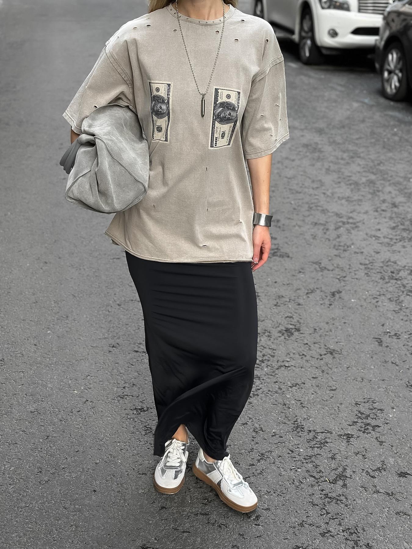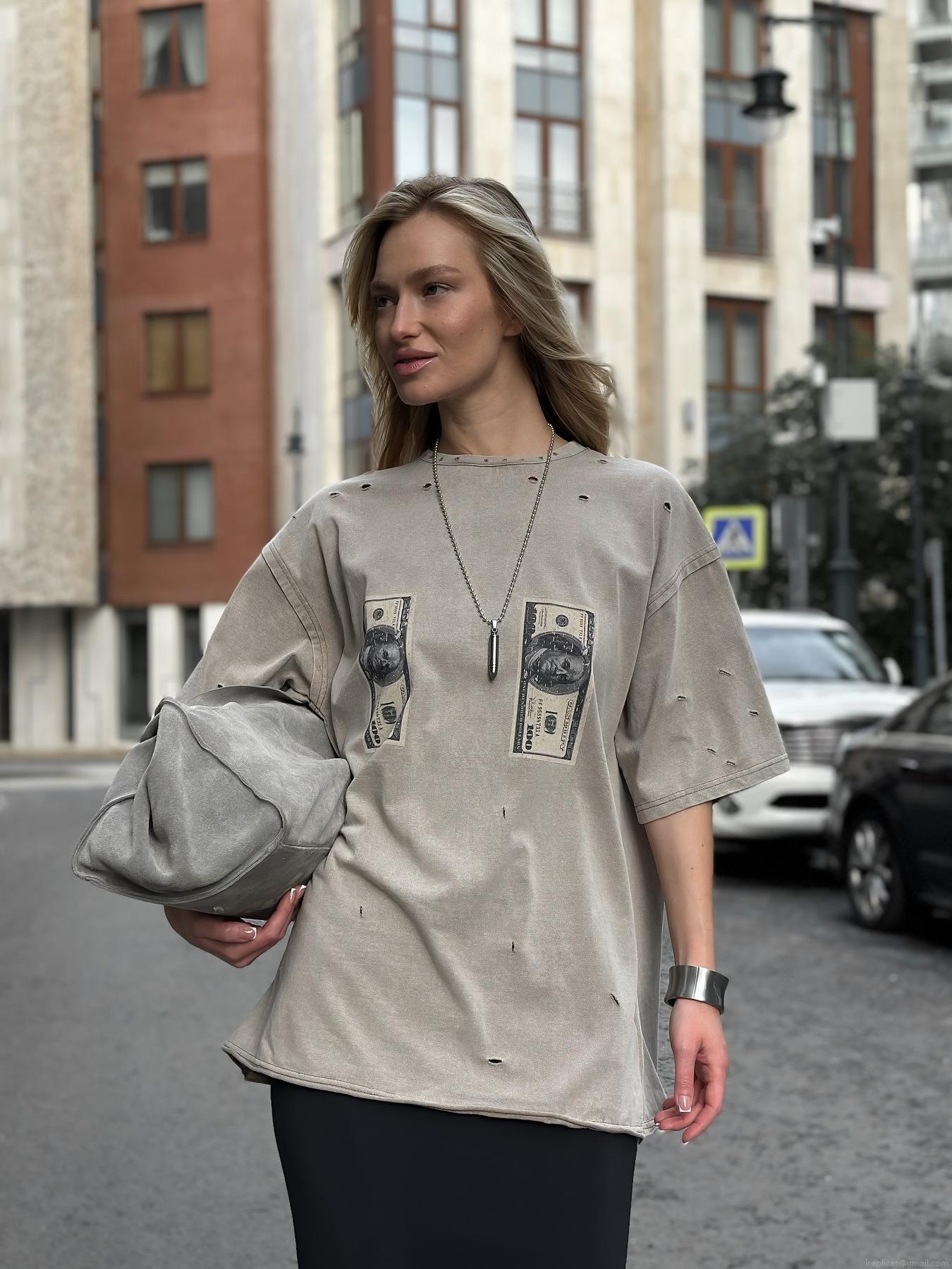 Women's Oversized 100% Cotton T-Shirt Distressed Ripped Washed Dollar Print Streetwear Retro Short Sleeve Tee Top For Summer Daily Wear