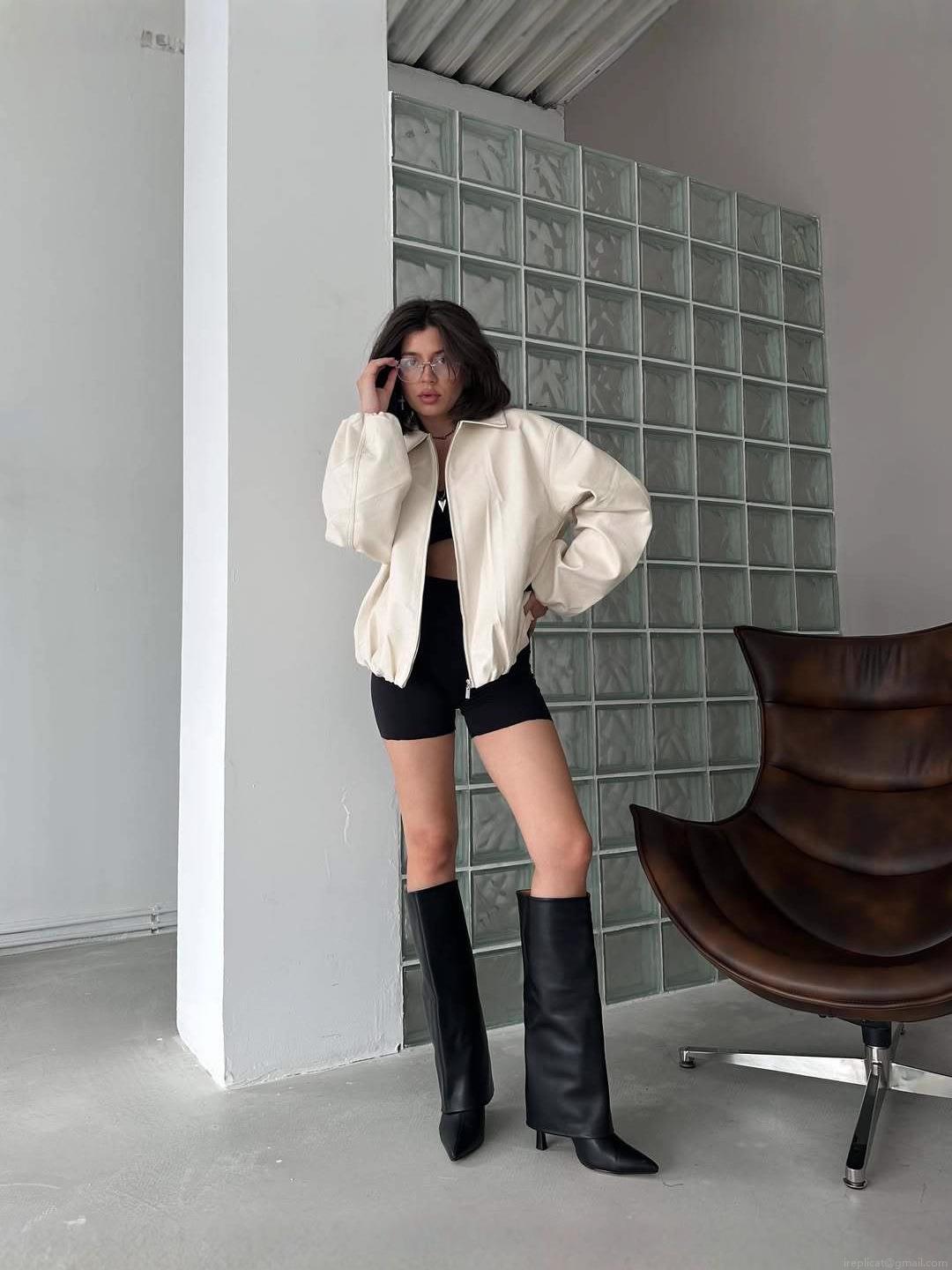 Vintage Faux PU Leather Jacket For Women Long Sleeve Lapel Collar Zip...