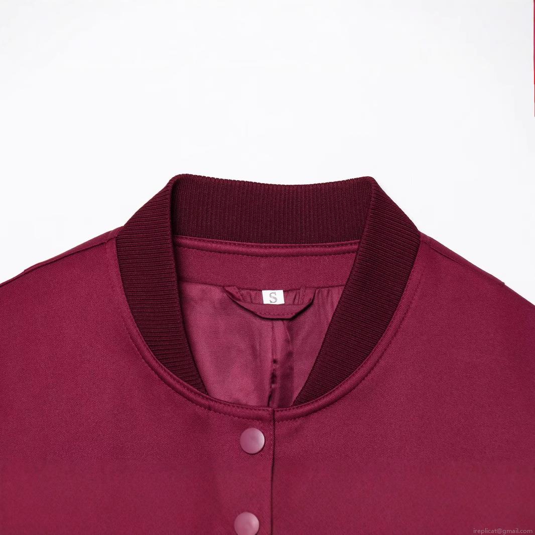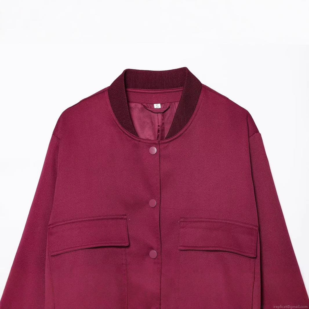 Women's Oversized Bomber Jacket Solid Burgundy Polyester Woven Coat With Single Breasted Snap Buttons Ribbed Trim Stand Collar Pockets Streetwear Outwear