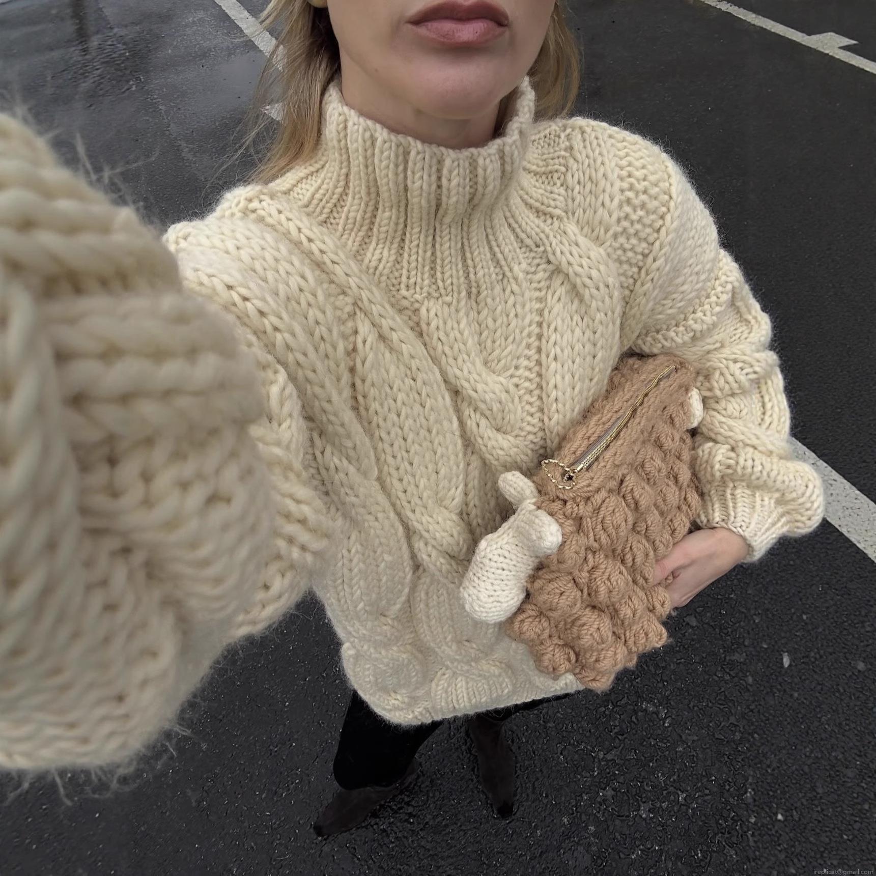 Women's Oversized Cable Knit Sweater Thick High Neck Long Sleeve Pullover Jumper Casual Loose Solid Color Knitted Tops For Autumn Winter