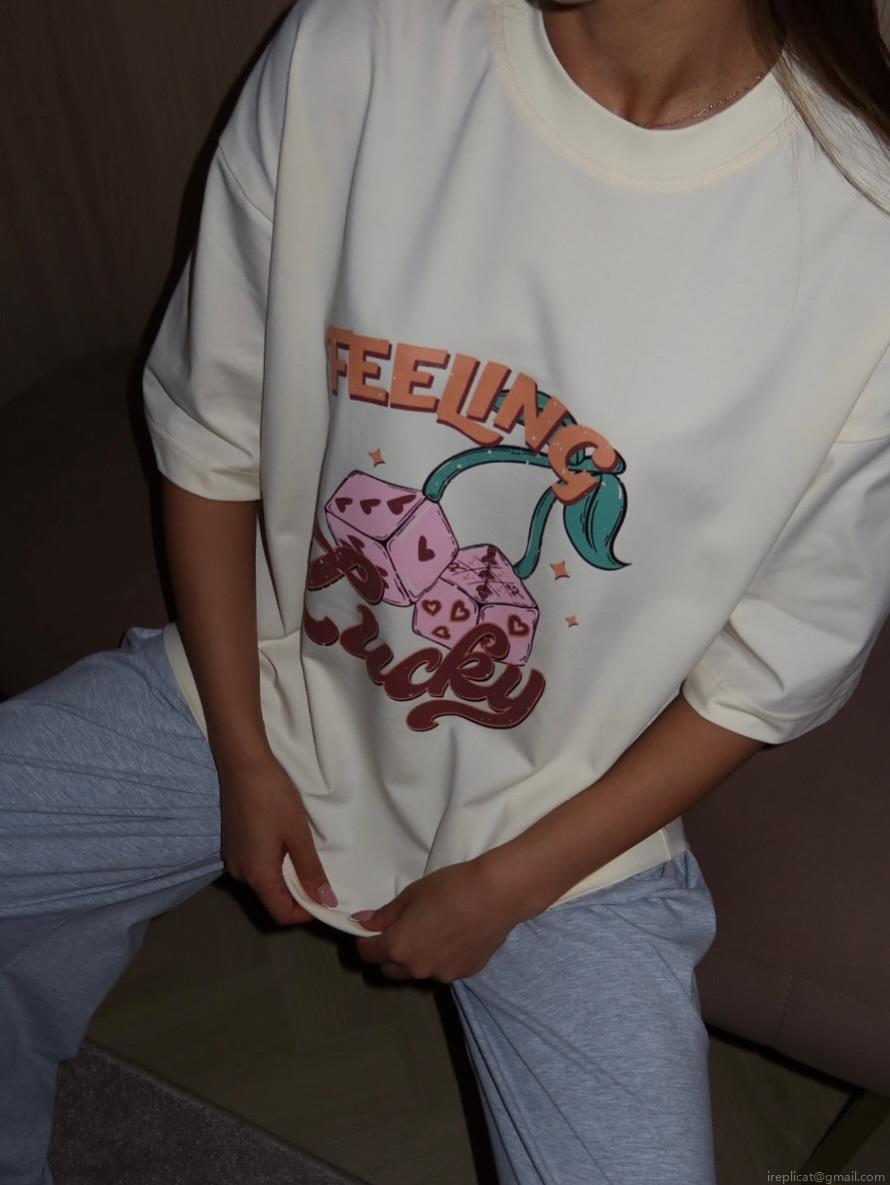 Cherry, Dice, Letters, Pink Heart, Letter Print, Illustration Print, Dropped Shoulders