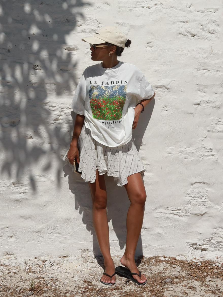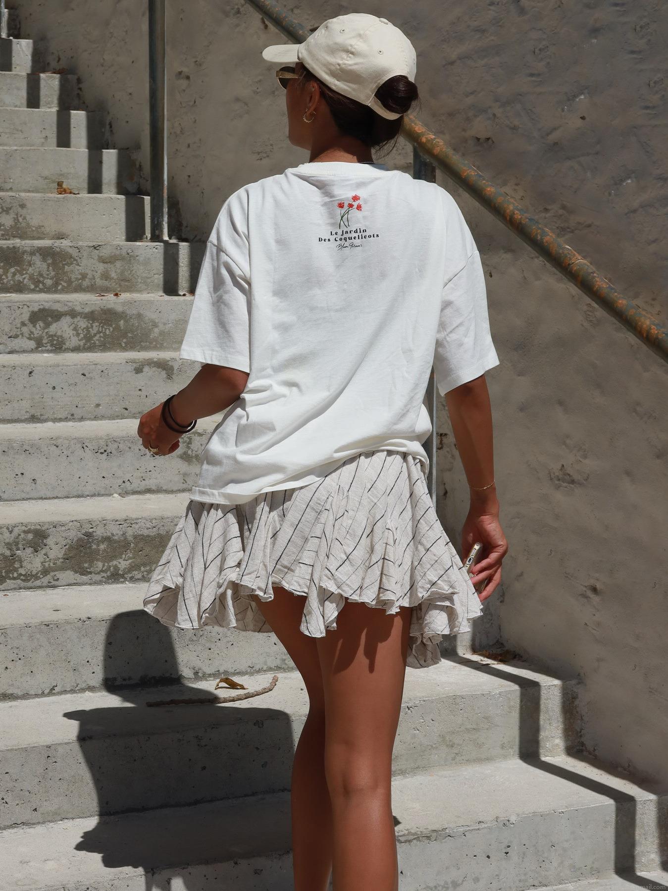 Women's Oversized Cotton Blend T-Shirt Graphic Floral Print Le Jardin French Text Casual Short Sleeve Round Neck Summer Streetwear Top