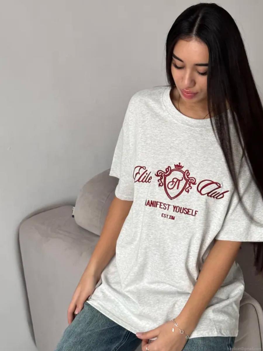 Women's Oversized Cotton T-Shirt With Retro Letter Embroidery Crew Neck Drop Shoulder Short Sleeve Casual Streetwear Summer Top