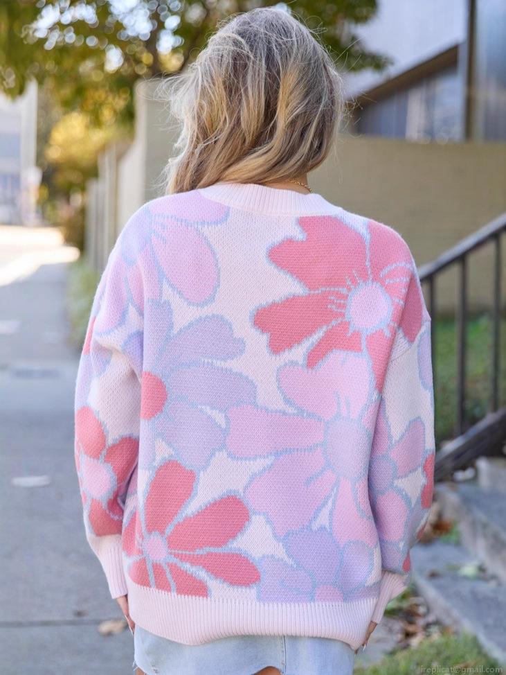 Floral, Color Blocking, Ribbed Seam, Large Flower Jacquard, Dropped Shoulders