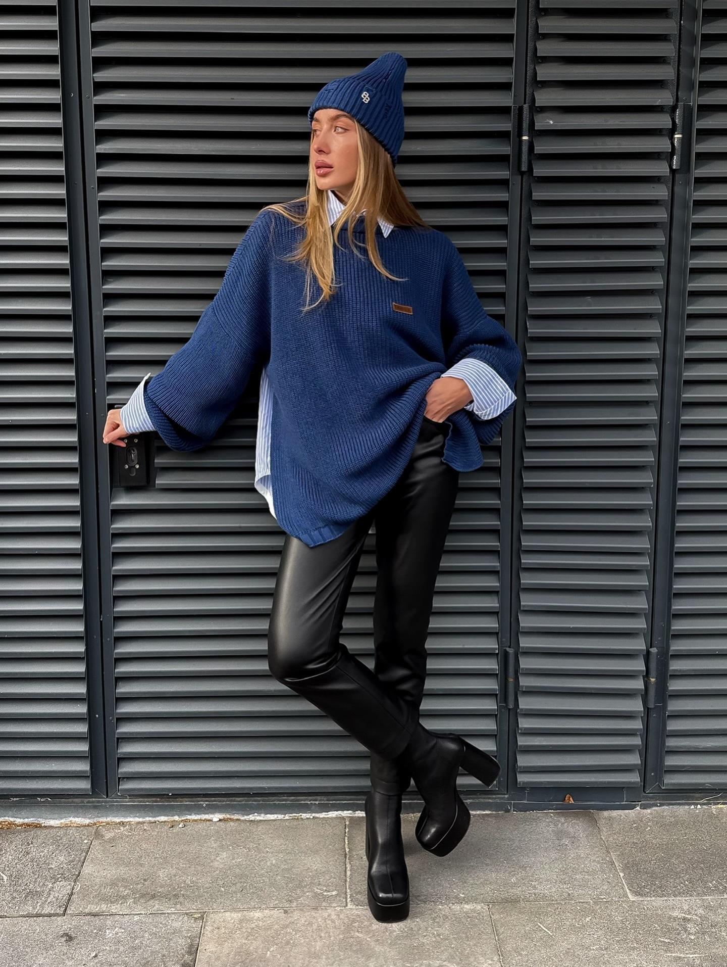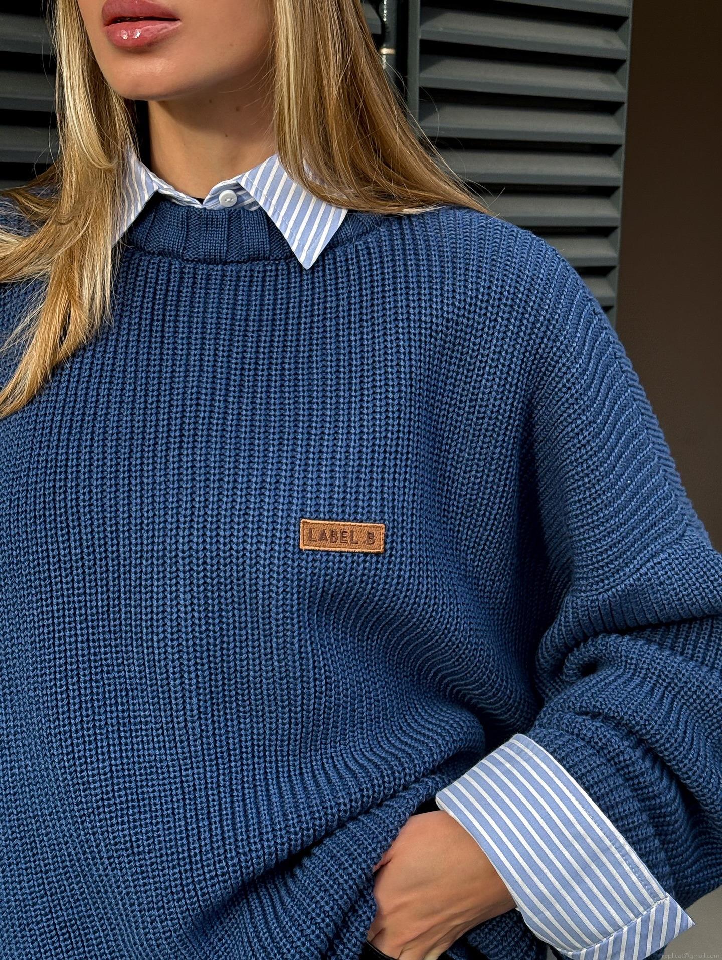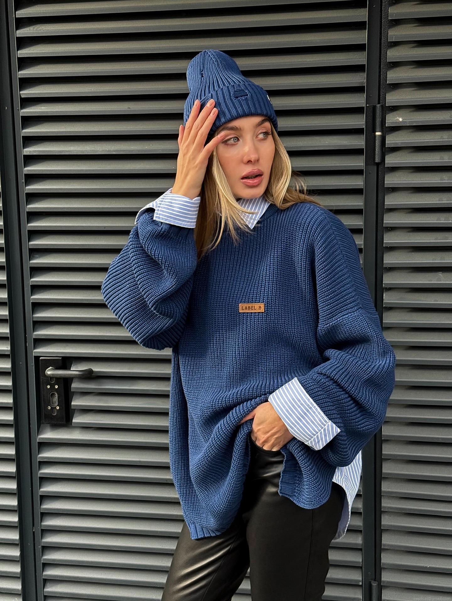 Women's Loose Knit Sweater Acrylic Wool Blend Contrast Stitching...