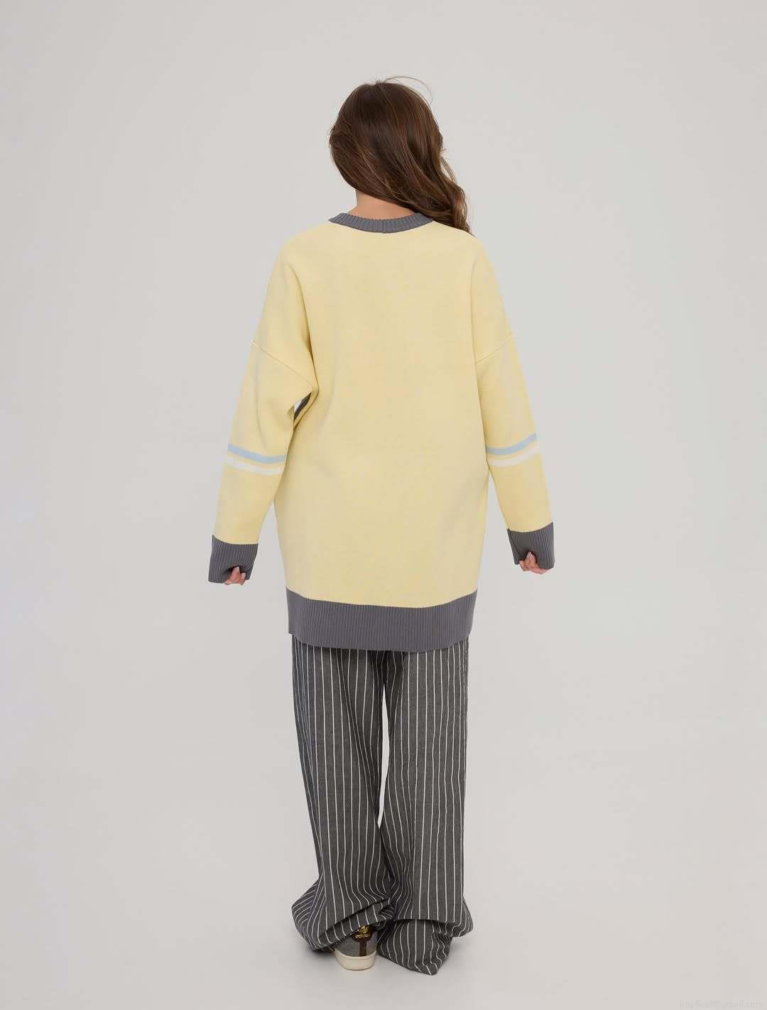 Women's V-Neck Striped Knit Sweater Oversized Long Sleeve Pullover...