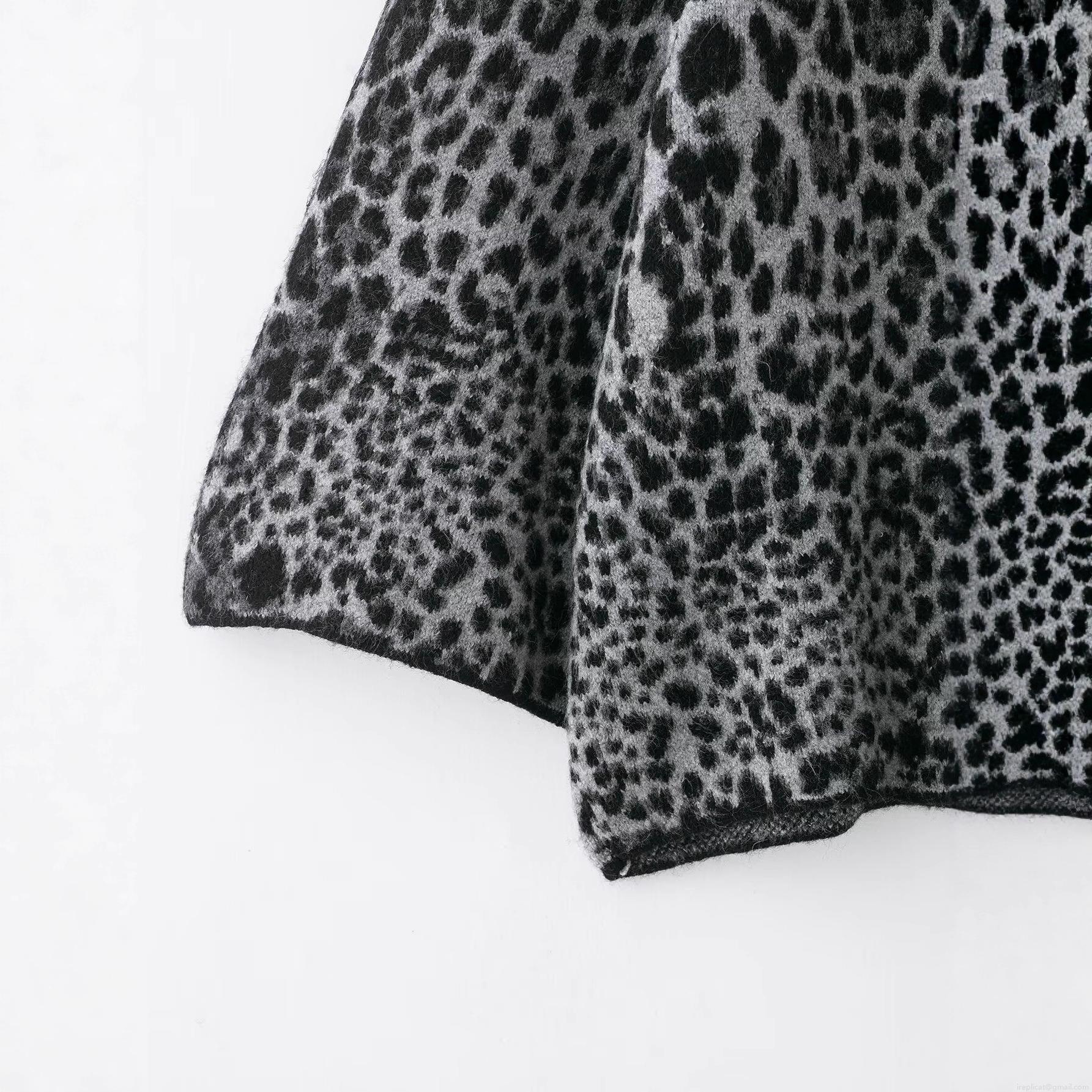 Women's Oversized Leopard Print Knit Sweater Casual Round Neck Long Sleeve Polyester Pullover Streetwear Animal Pattern Loose Jumper