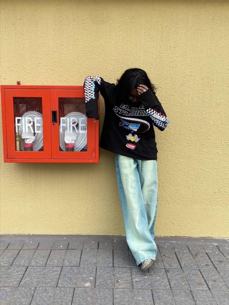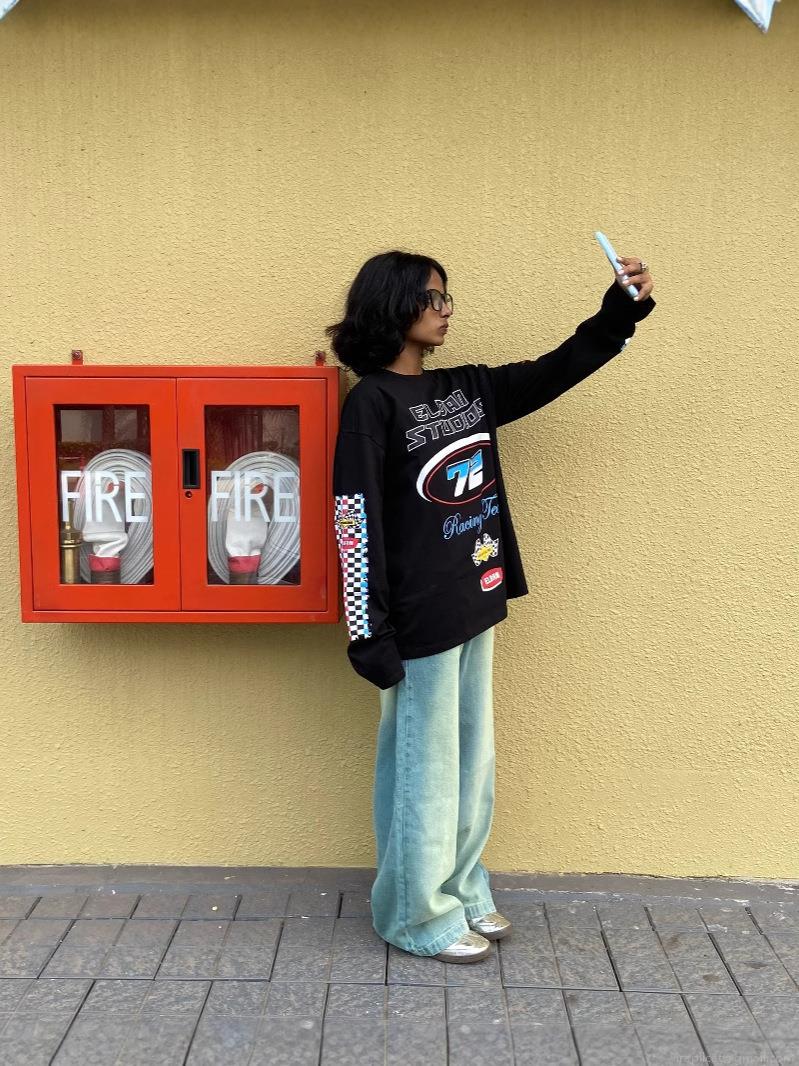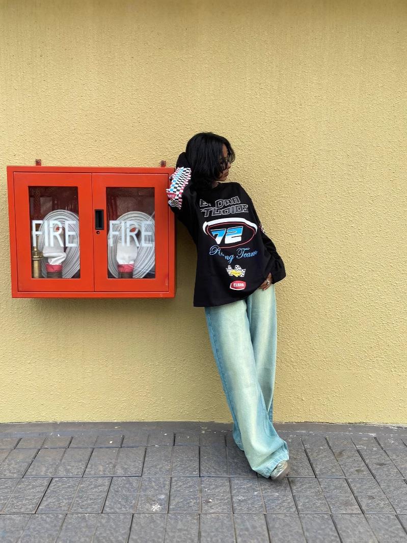 Women's Oversized Long Sleeve T-Shirt Cotton Polyester Blend Racing Motorcycle Graphic Print Streetwear Fashion Casual Loose Round Neck Top for Women