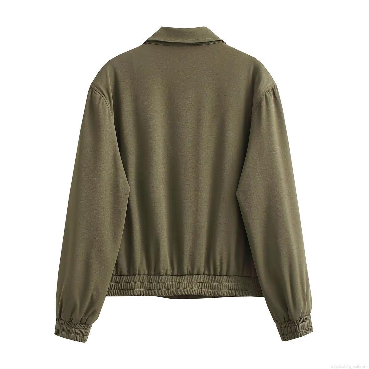 Women's European Style Stand Collar Long Sleeve Zipper Jacket...