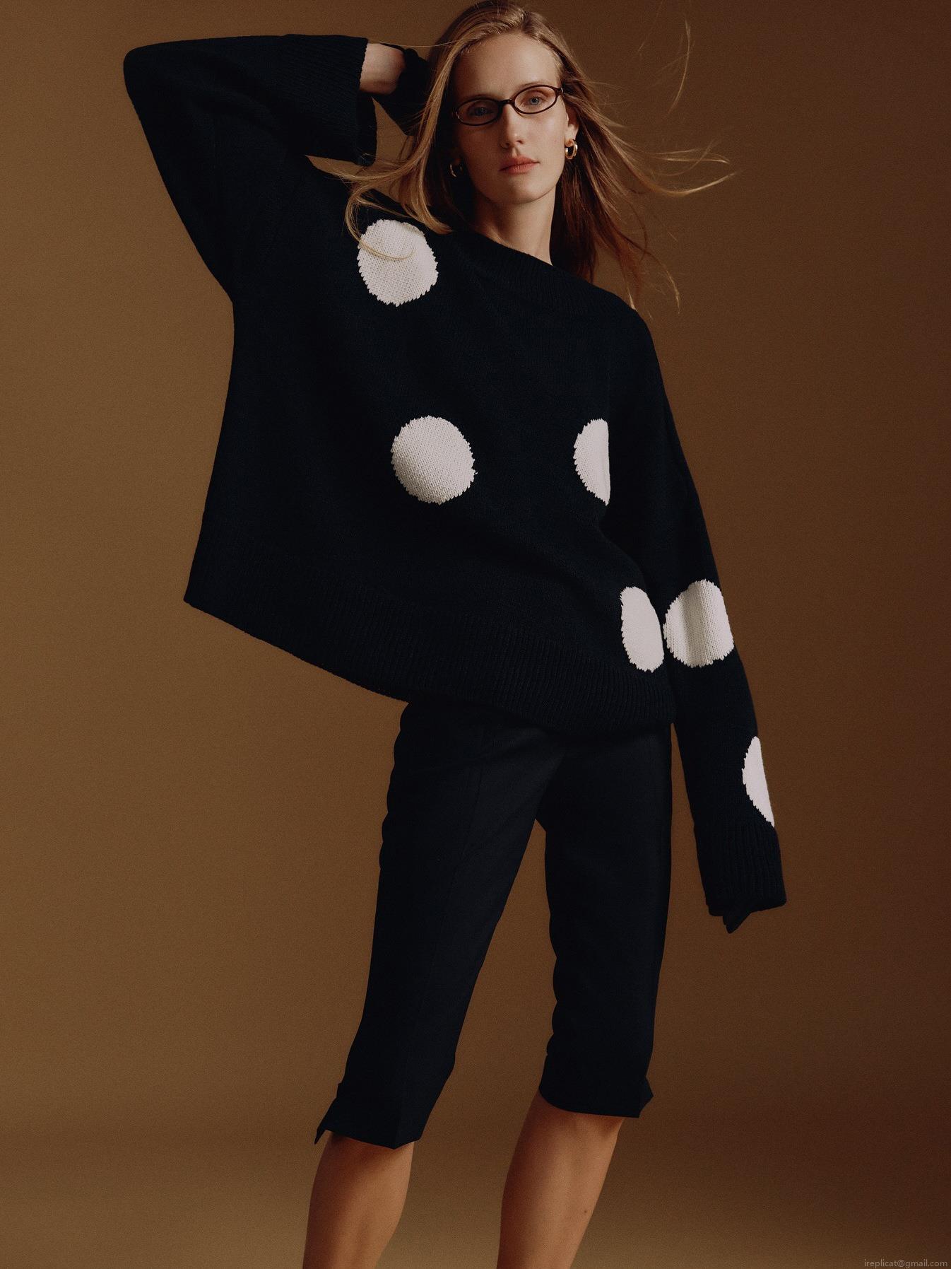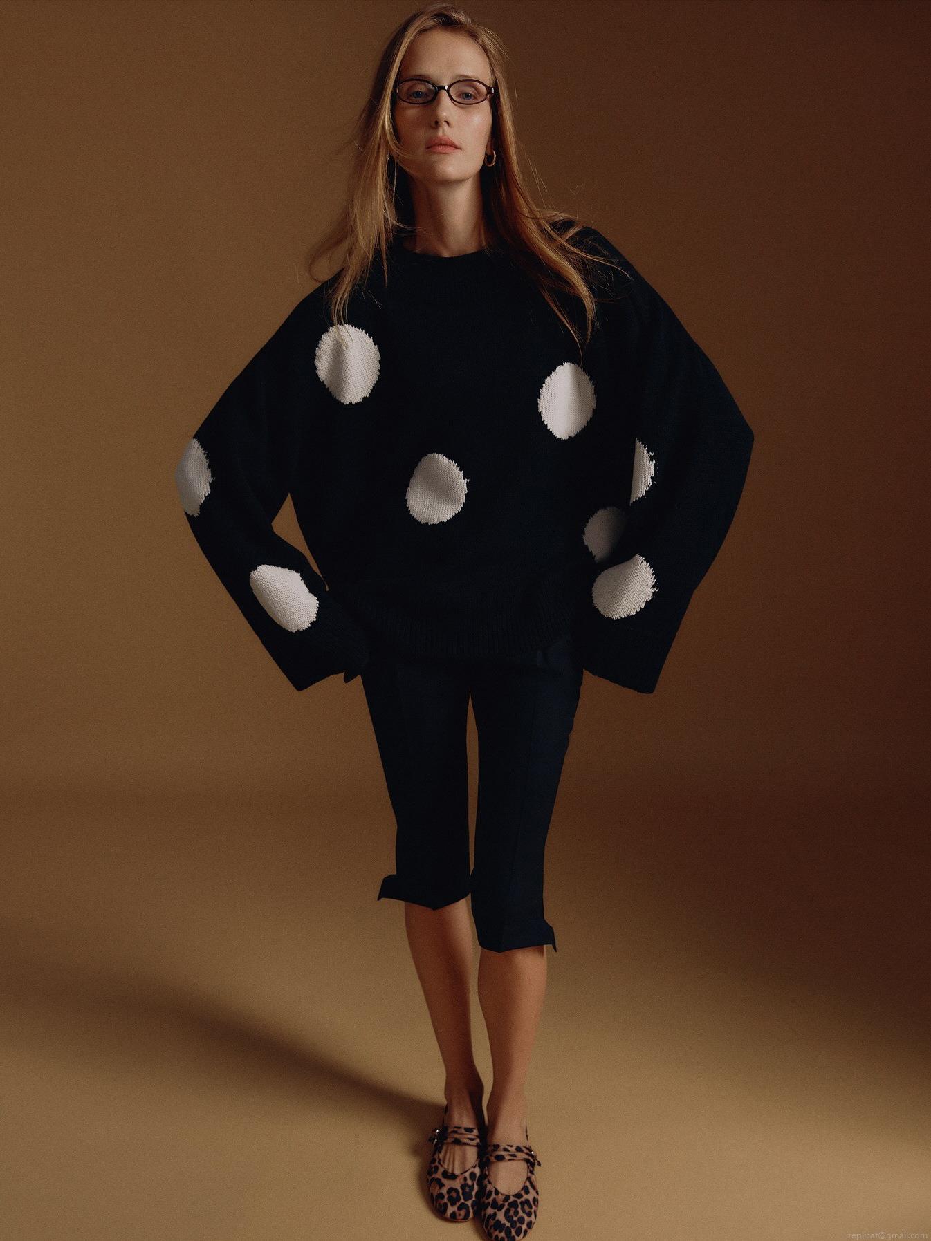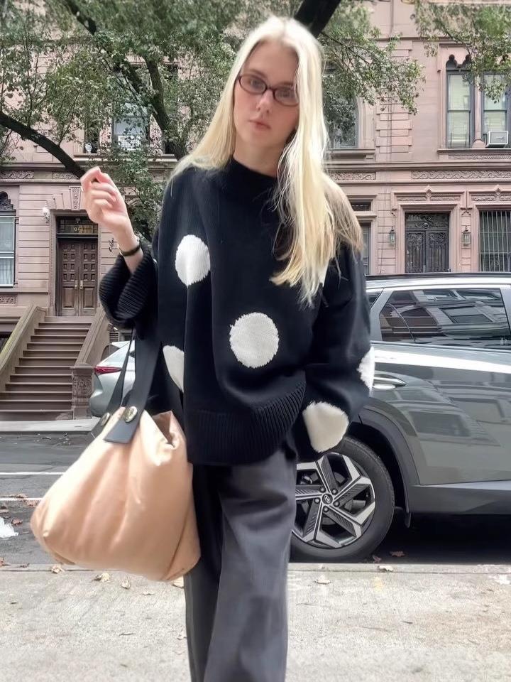 Women's Oversized Polka Dot Knitted Sweater Acrylic Cotton Blend Round Neck Long Sleeve Pullover Soft Warm Jumper Retro Streetwear Autumn Winter Casual Knitwear Top