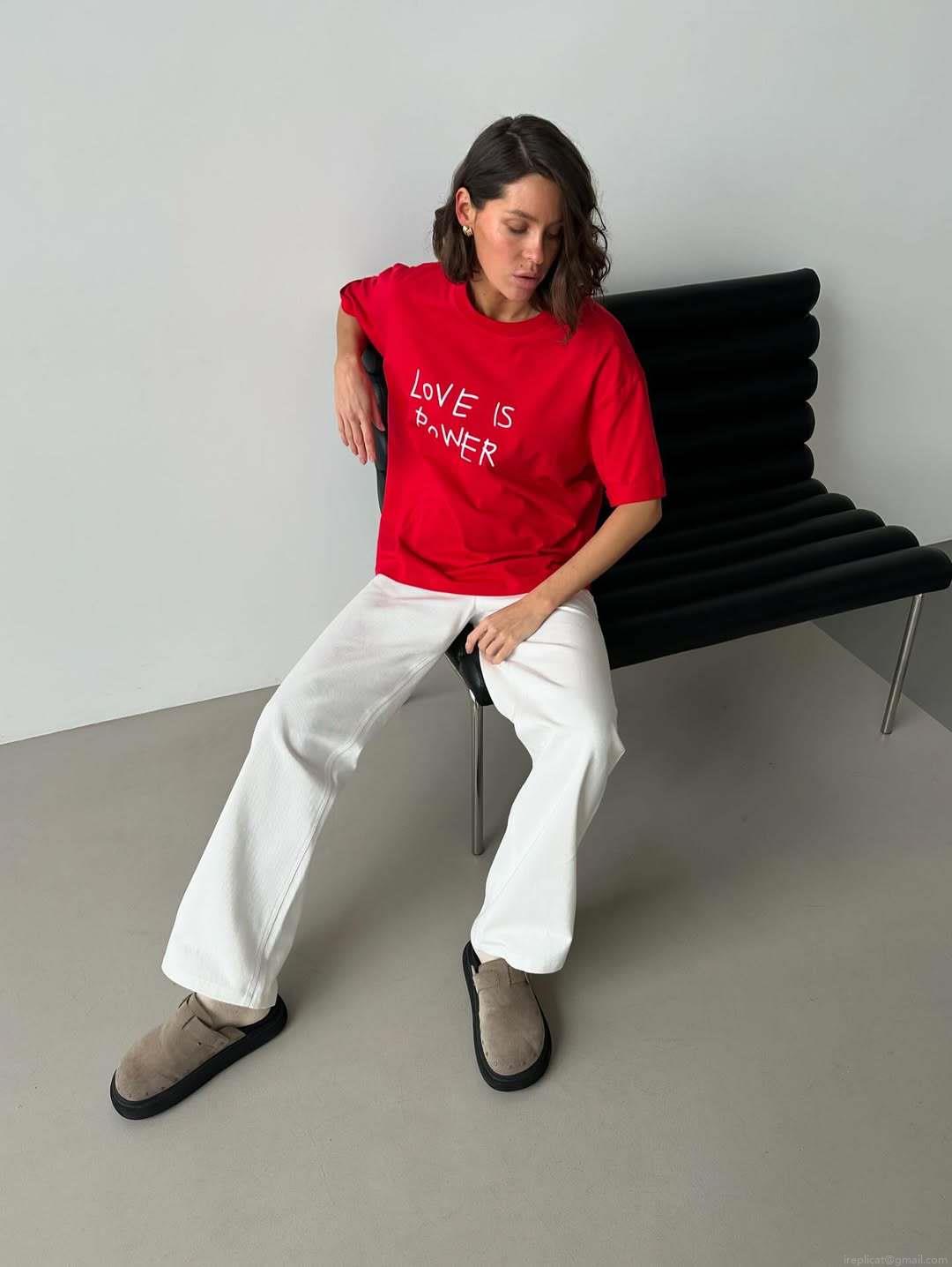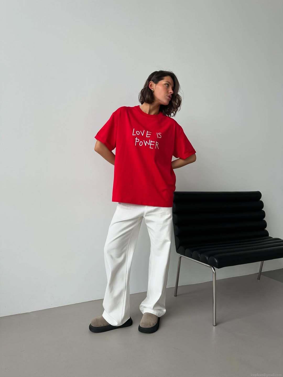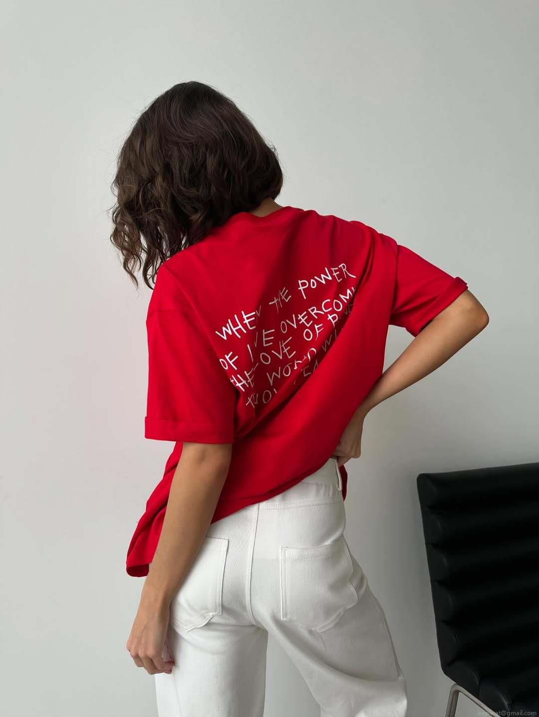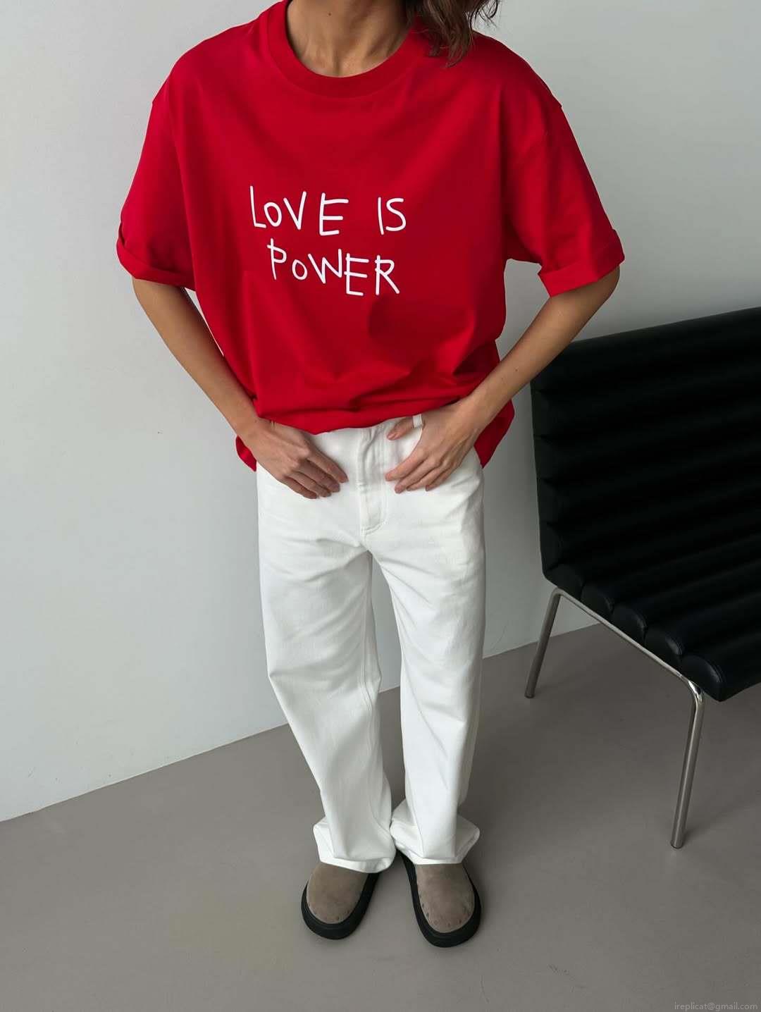 Women's Oversized Red T-Shirt Love Is Power Slogan Print Crew Neck Short Sleeve Loose Cotton Blend Drop Shoulder Streetwear Summer Tee Top