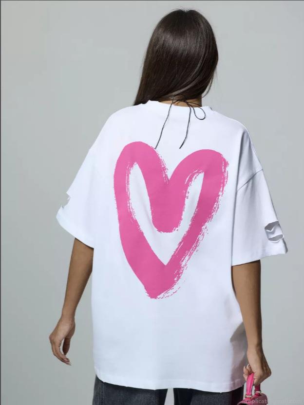 Women's Oversized T-Shirt Acid Wash Distressed Hole Short Sleeve Top Pink Heart Print Streetwear Loose Knit Cotton Blend Tee For Women Casual Daily Wear