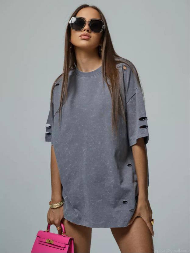 Women's Oversized Graphic T-Shirt Vintage Ripped Distressed Cotton...