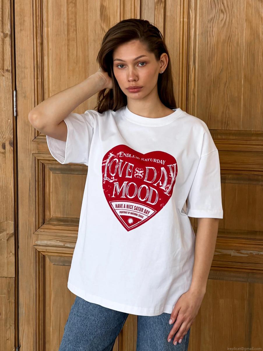 Women's Oversized T-Shirt Cotton Blend Short Sleeve Round Neck Heart Letter Print Casual Streetwear Summer Breathable Loose Top