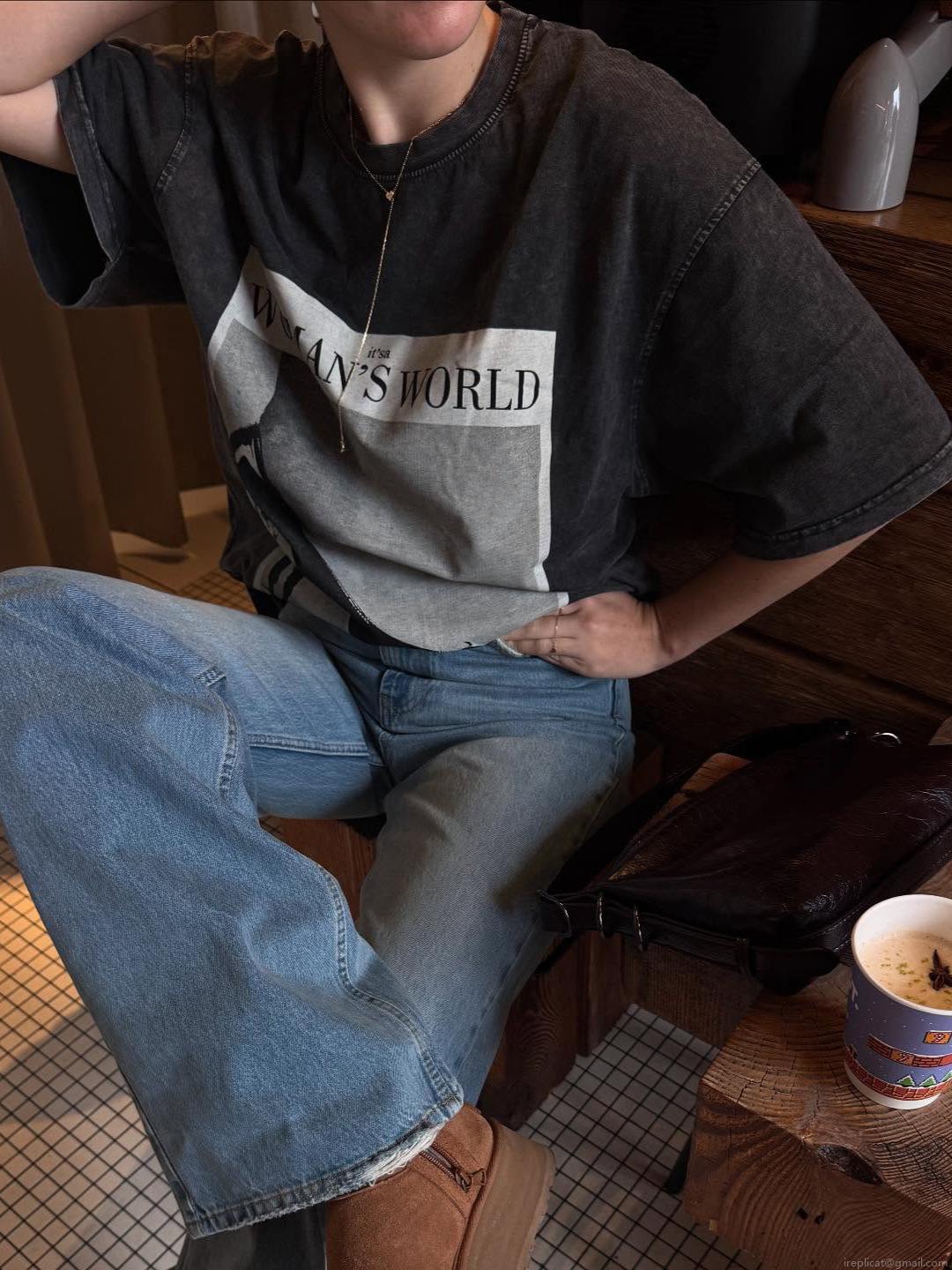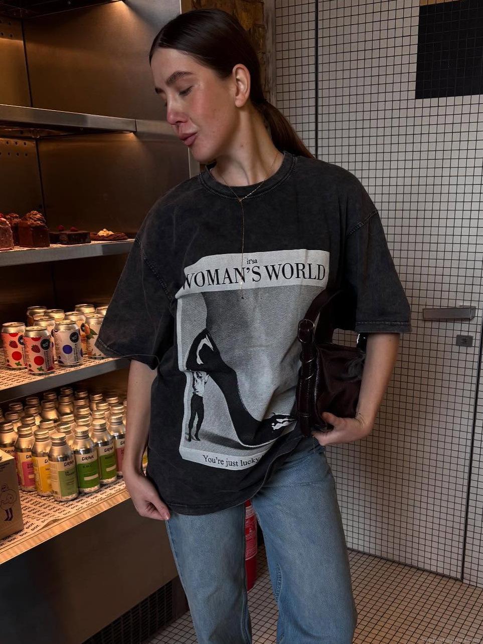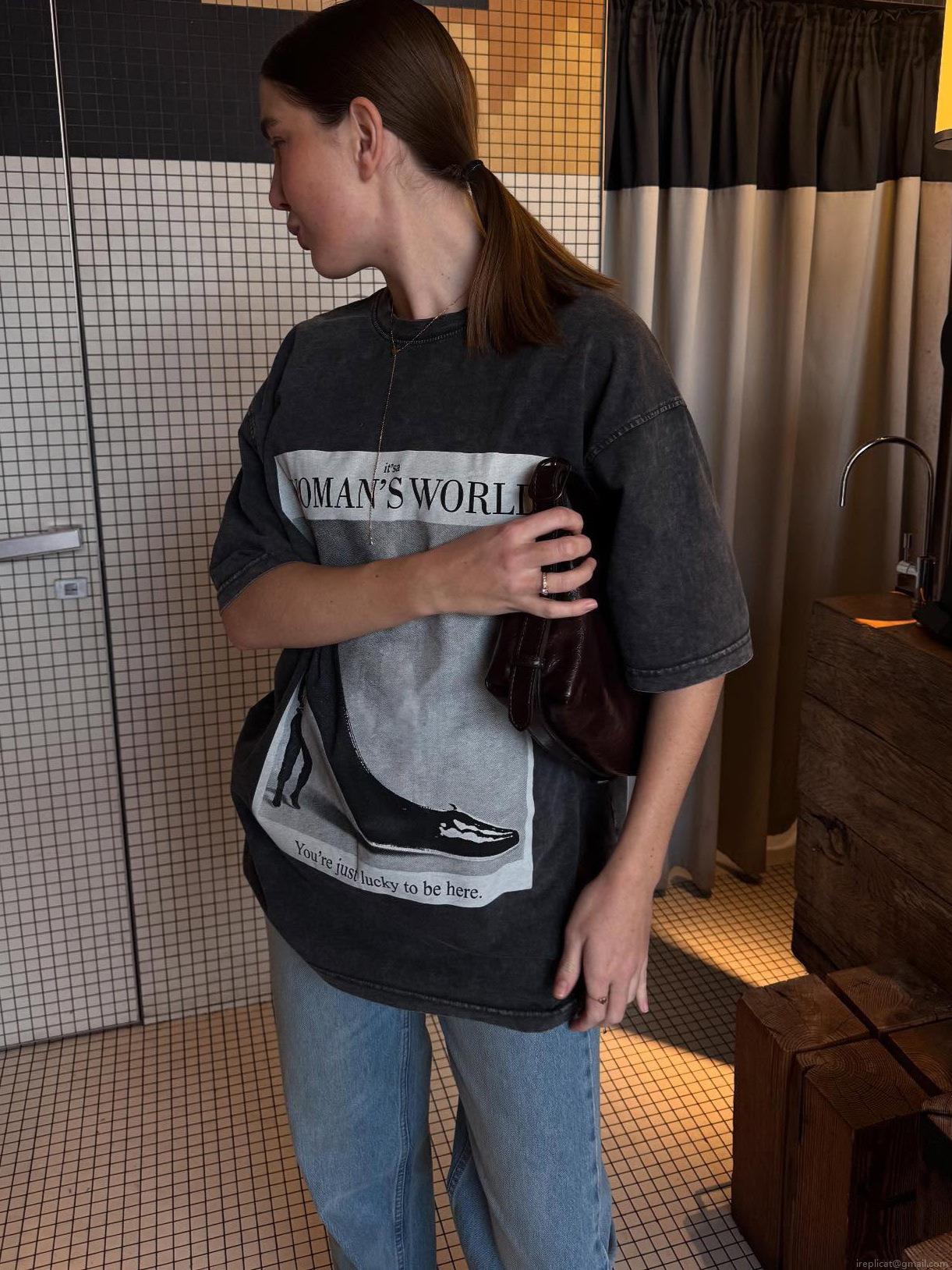Women's Oversized Washed Cotton T-Shirt Retro High Heel Letter Graphic Print Short Sleeve Distressed Streetwear Casual Tee Top