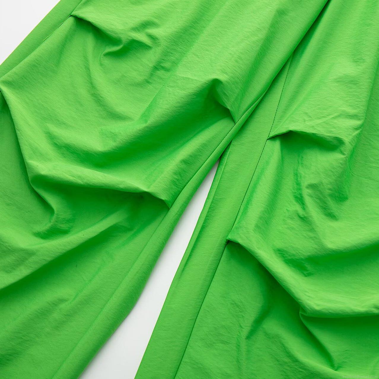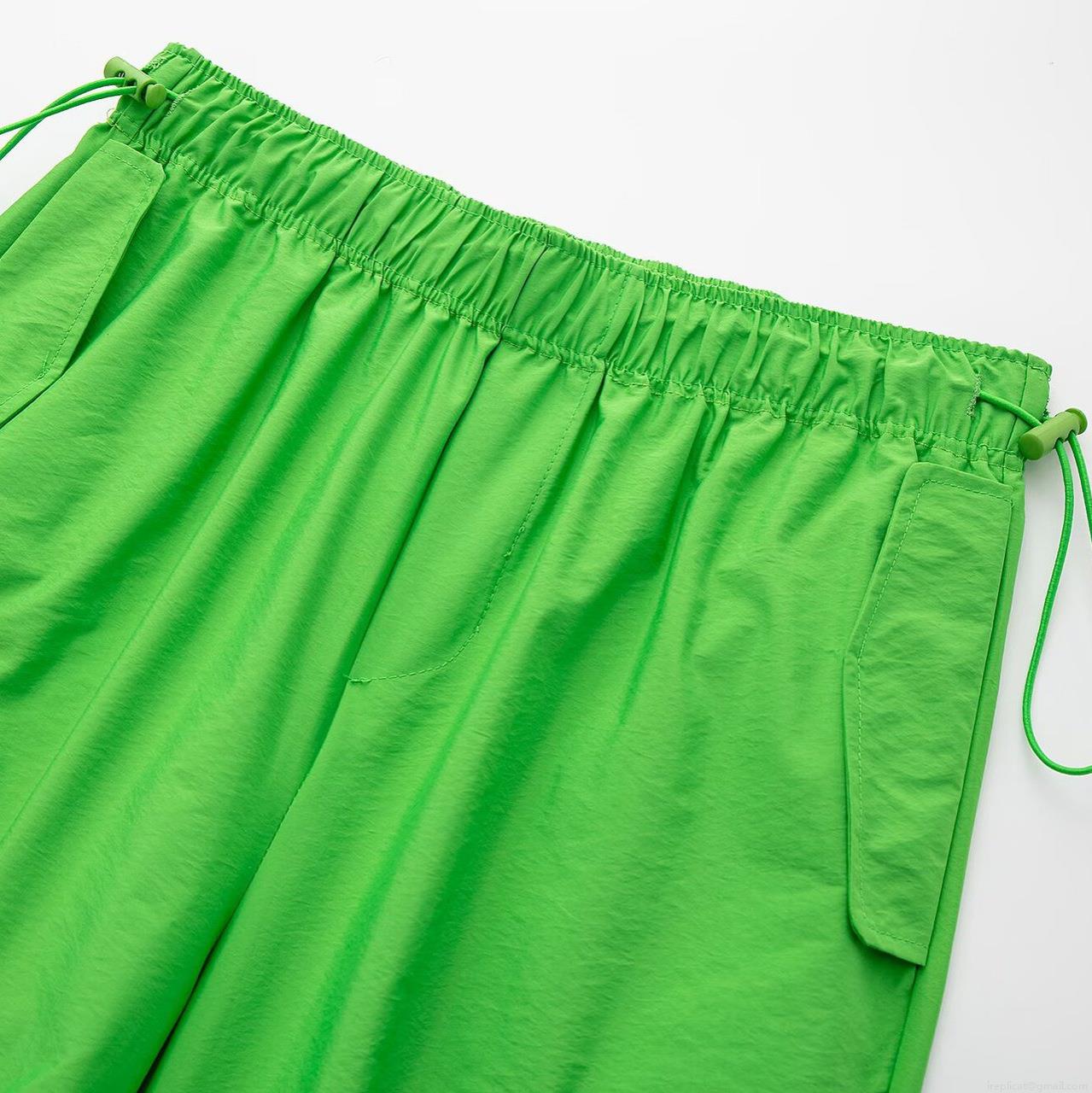 Women's Parachute Cargo Pants Polyester Drawstring Elastic Waist Casual Outdoor Streetwear Baggy Jogger Pants With Knee Pleats