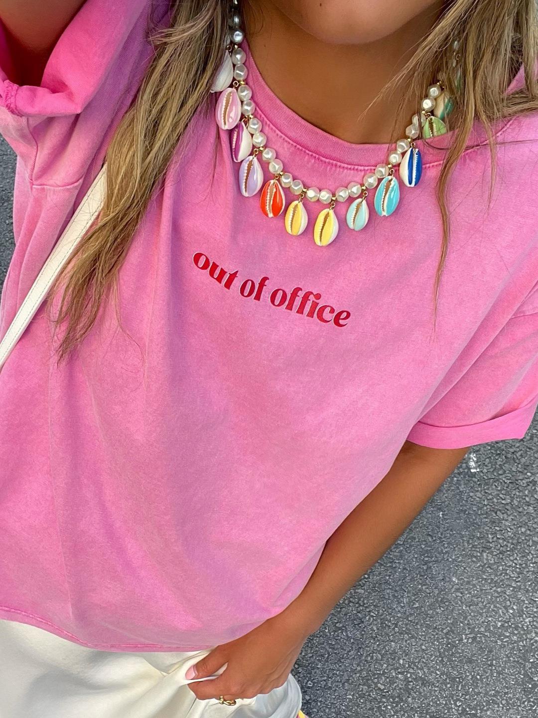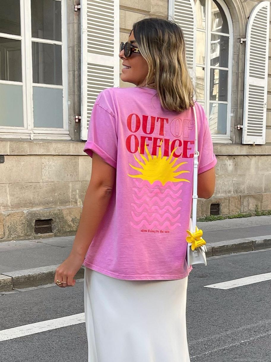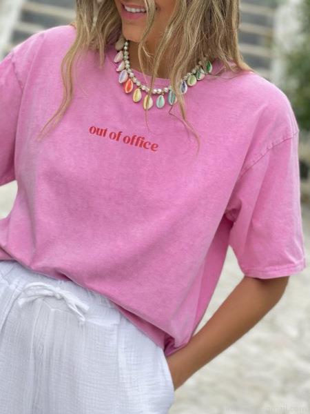 Women's Pink Cotton Short Sleeve T-Shirt With Out Of Office Letter Print Summer Vacation Casual Loose Fit Oversized Tee Streetwear Dopamine Style Top