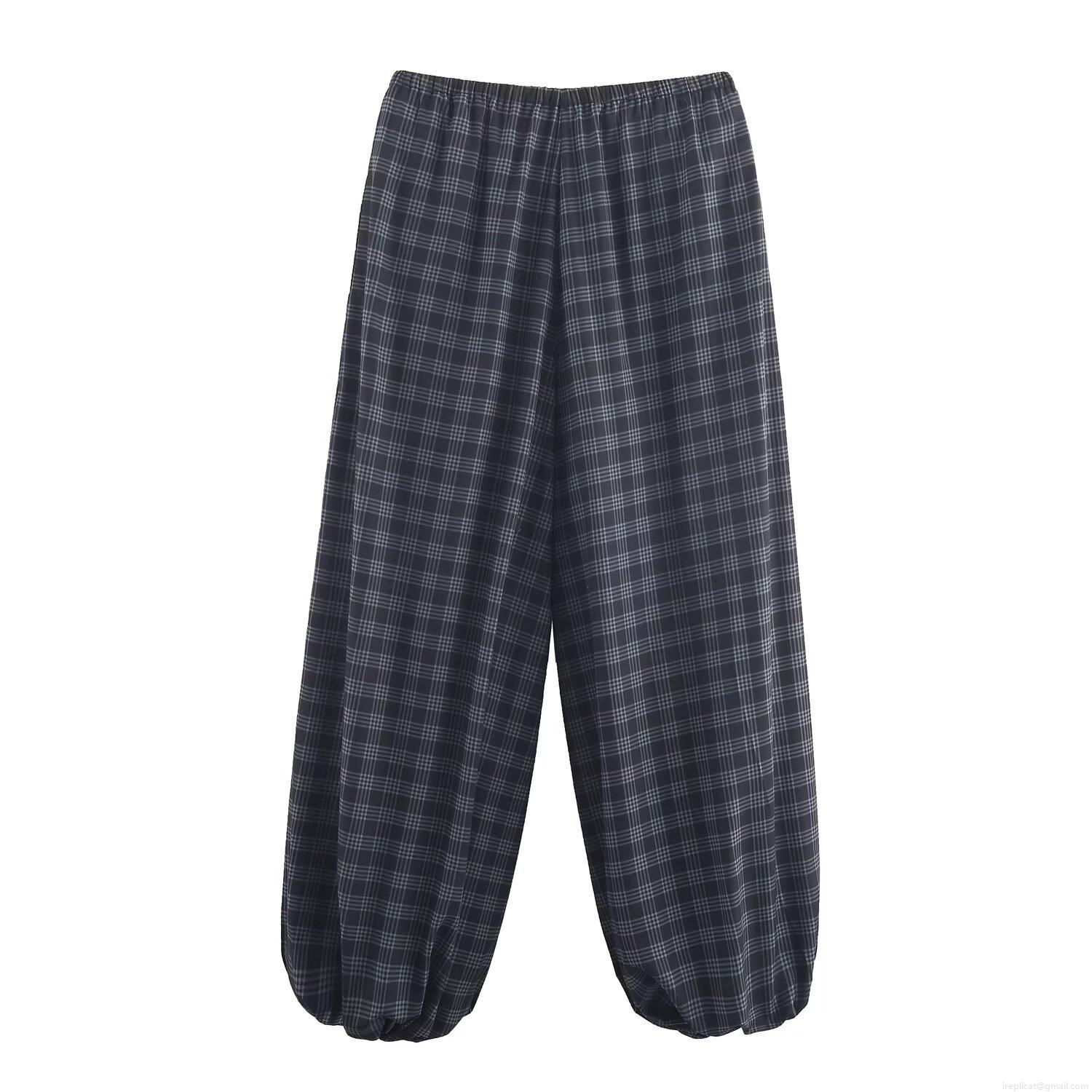 Women's Plaid Bloomers Loose Lantern Pants Drawstring Checkered Baggy Trousers Casual Elastic Waist Harem Trousers For Women
