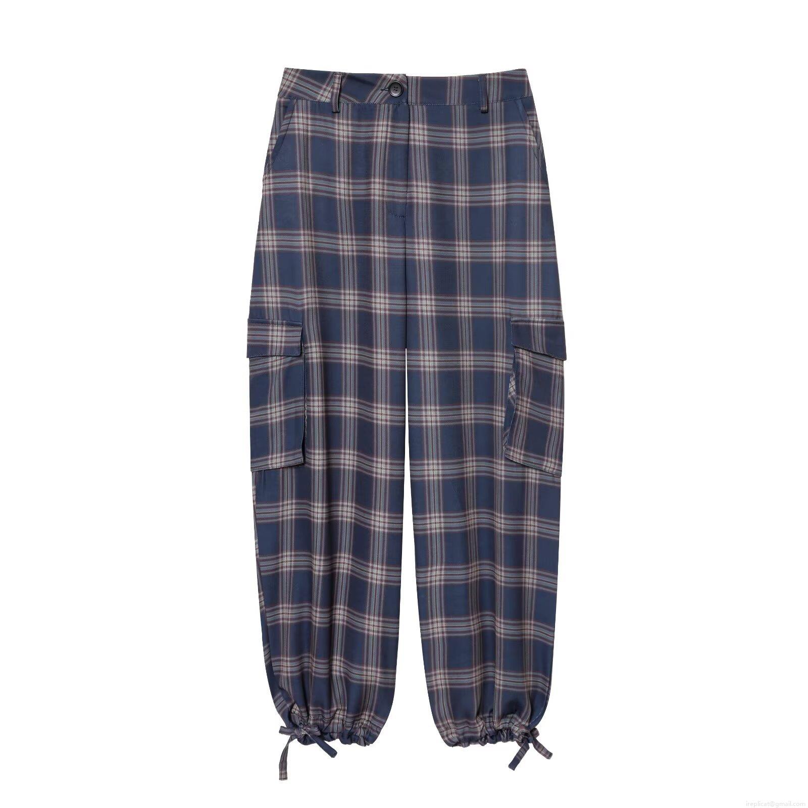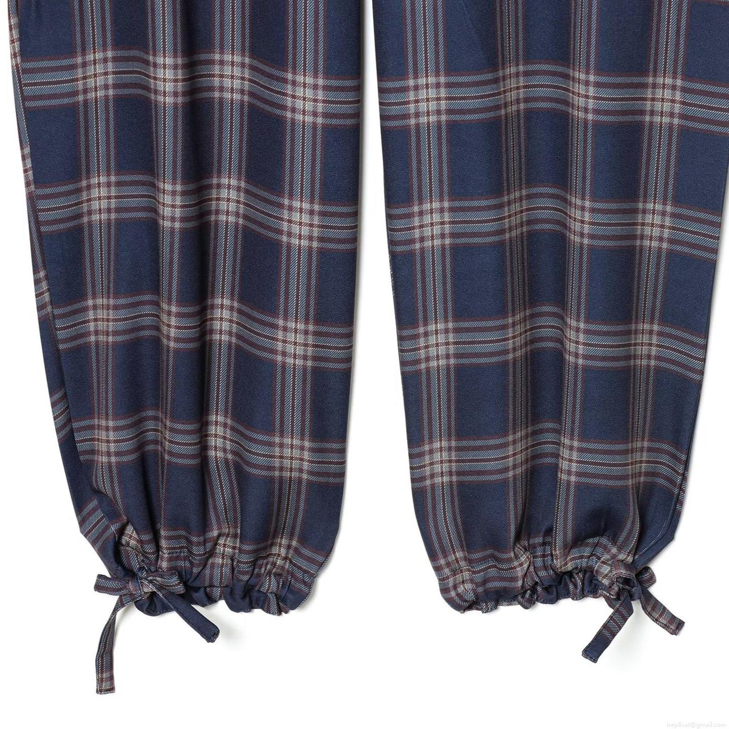 Checkered Pattern, Multiple Pockets, Ribbon Bow, Drawstring Trouser Legs