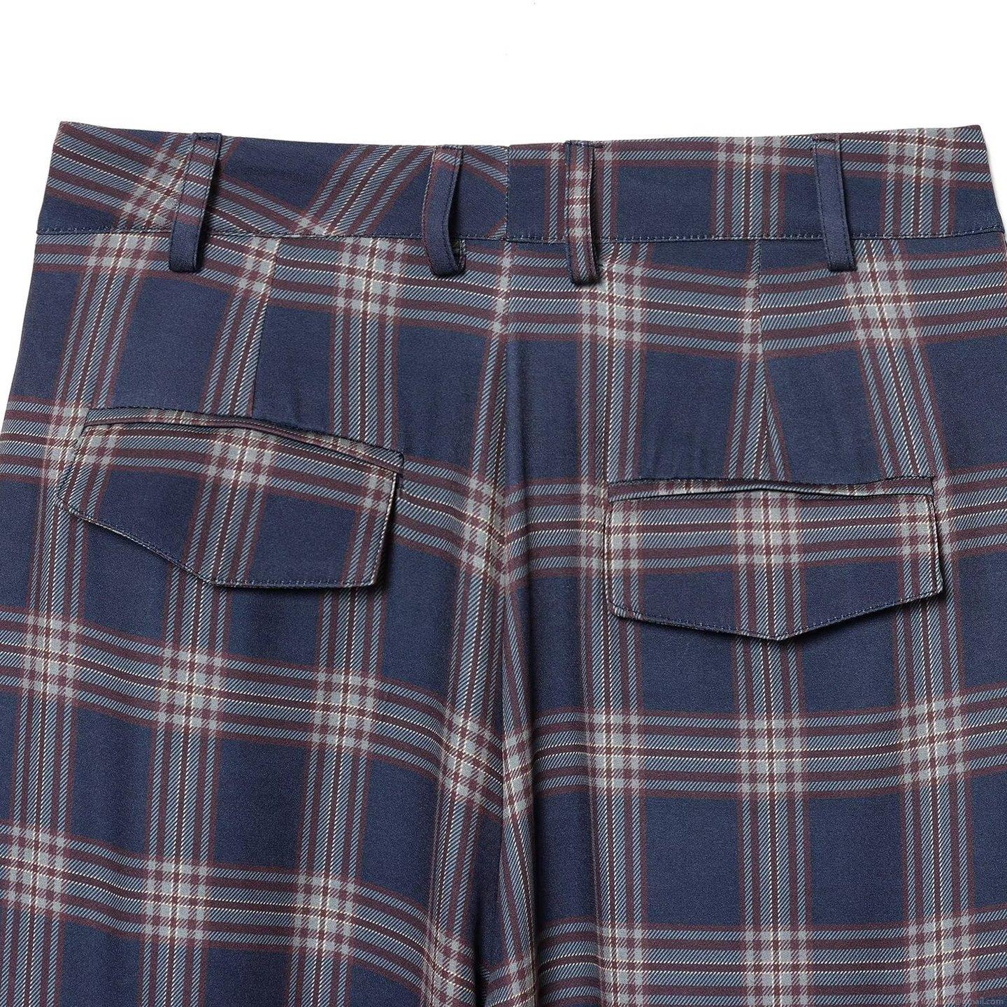 Women's Plaid Cargo Pants Fashion High Waist Multi-Pocket Tapered Trousers Vintage Blue Plaid Polyester Long Pants With Leg Ties For Women