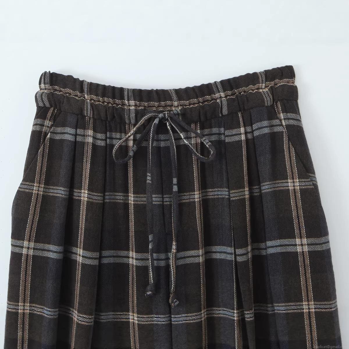 Women's Plaid High Waist Casual Pants Polyester Drawstring Elastic Waist Tapered Trousers For Daily Fashion Grey Grid Loose Pants