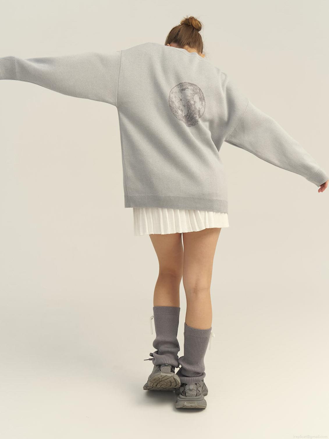 Mid-length, Letter Print, Dropped Shoulder Sleeves, Moon Pattern