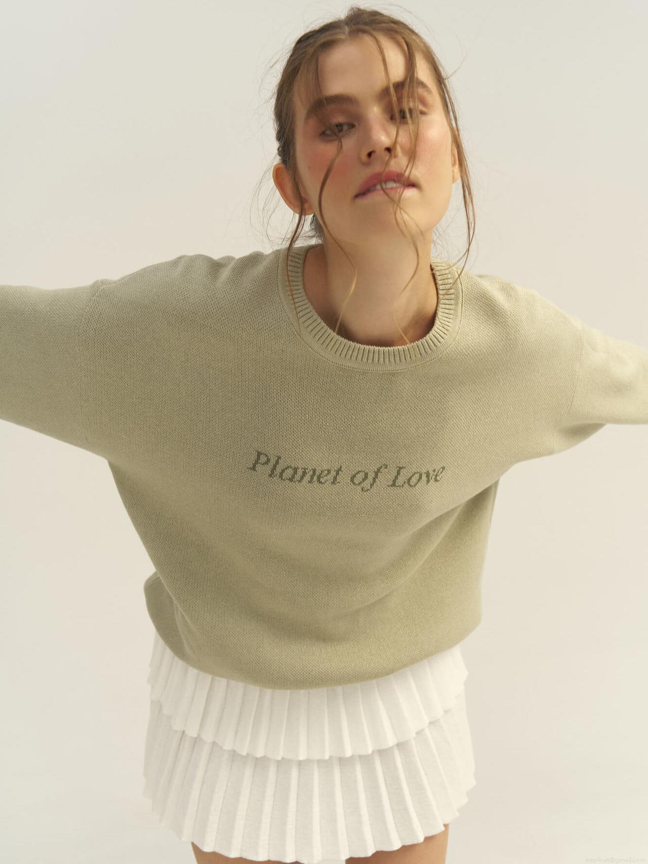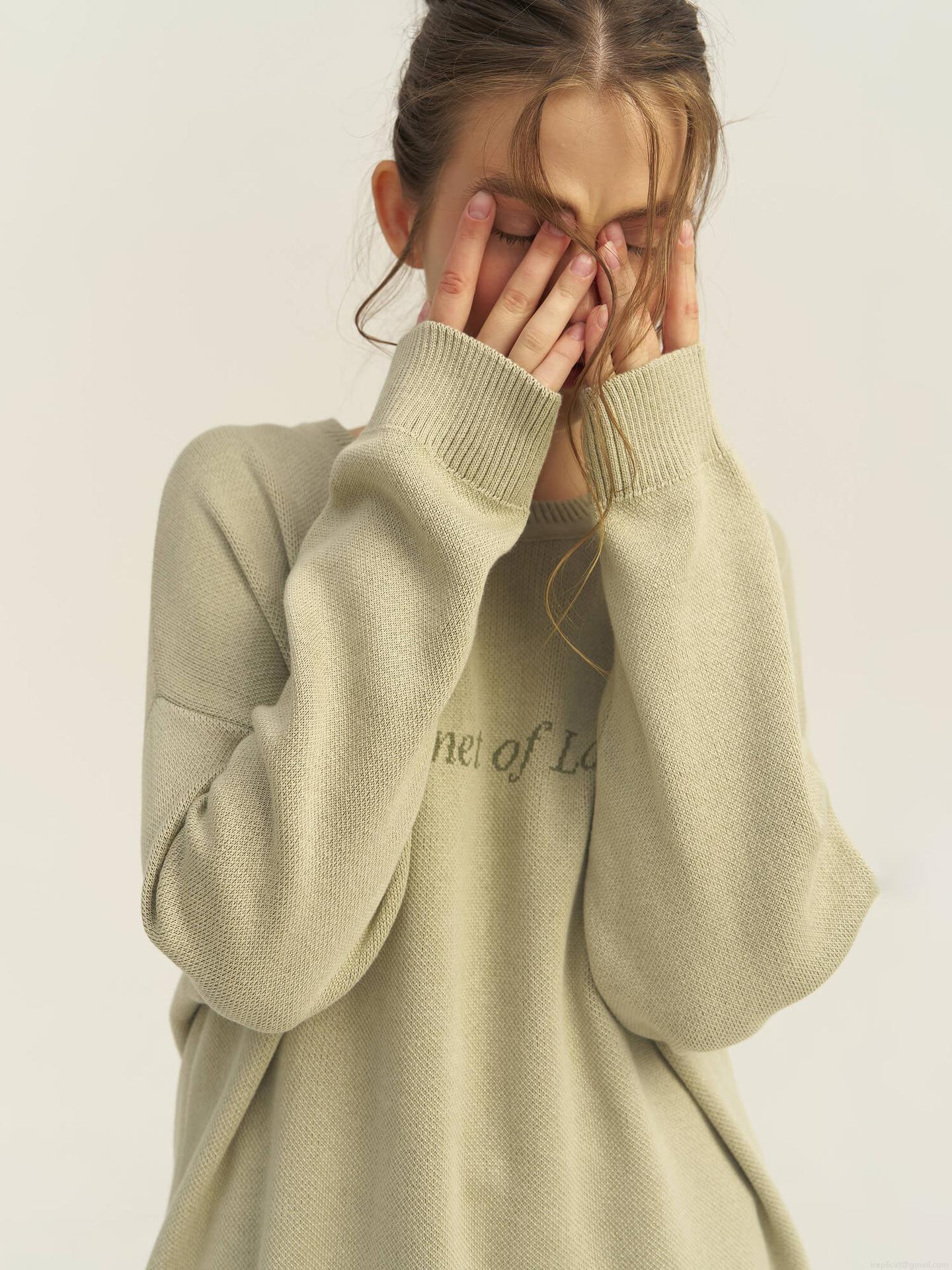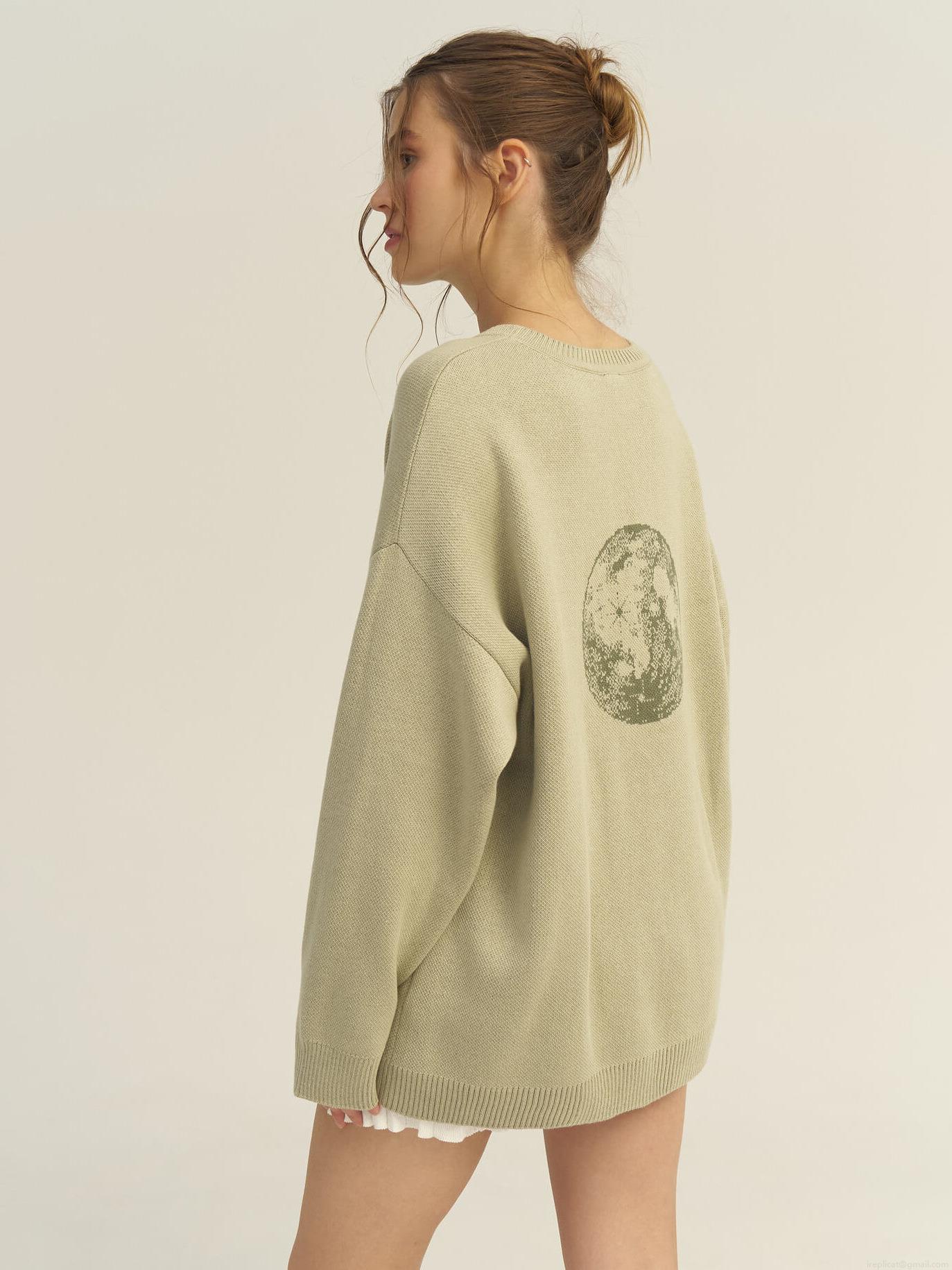 Women's Planet Of Love Letter Print Oversized Knit Sweater Cotton Polyester Blend Round Neck Long Sleeve Pullover Autumn Winter Casual Streetwear Jumper Top
