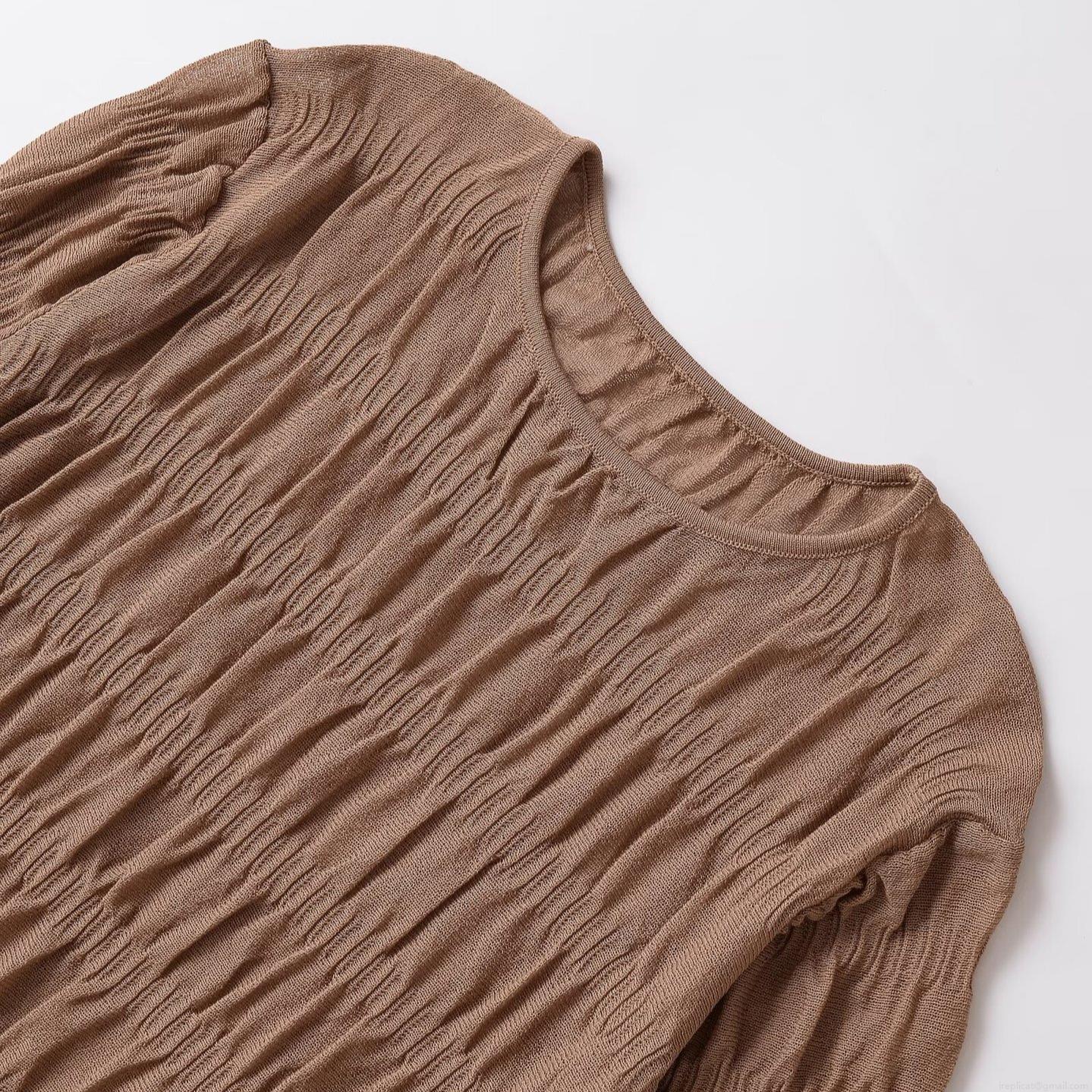 Women's Pleated Long Sleeve T-Shirt Solid Color Knit Top With Side Drawstring Asymmetric Hem Crew Neck Casual Elegant Polyester Spandex Blouse